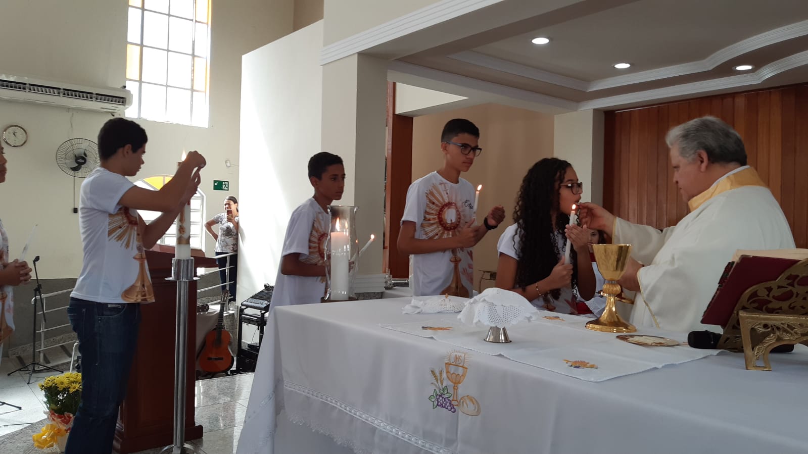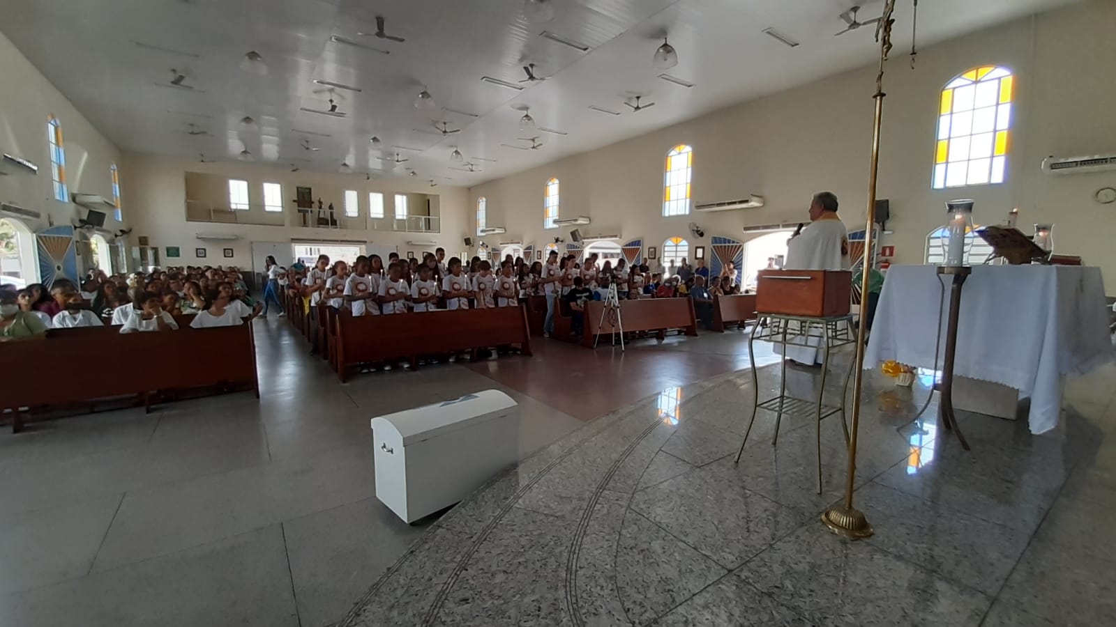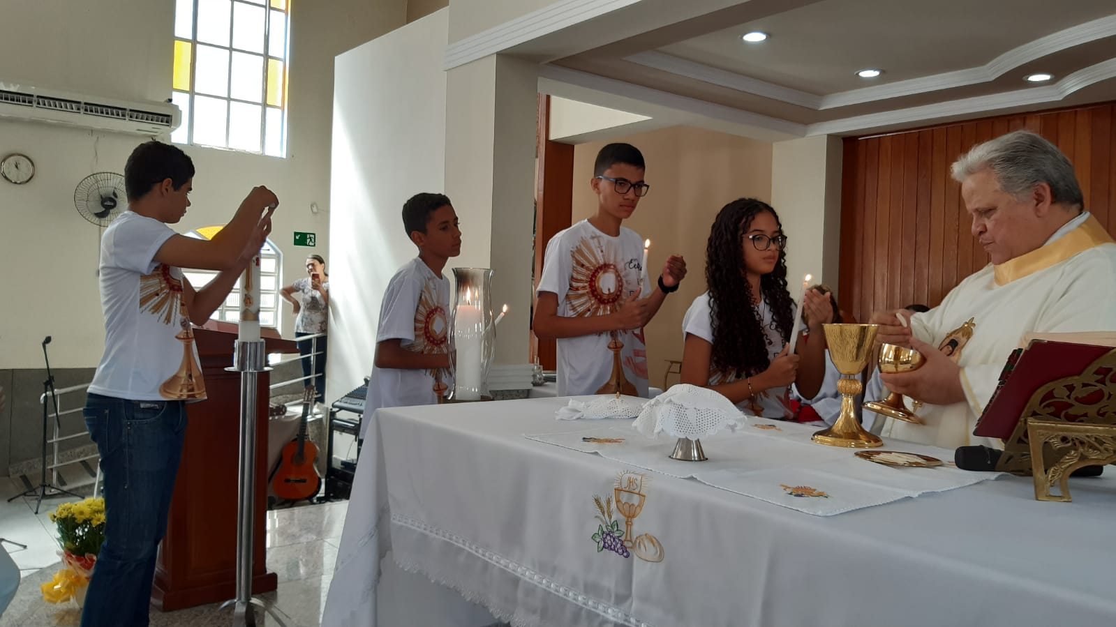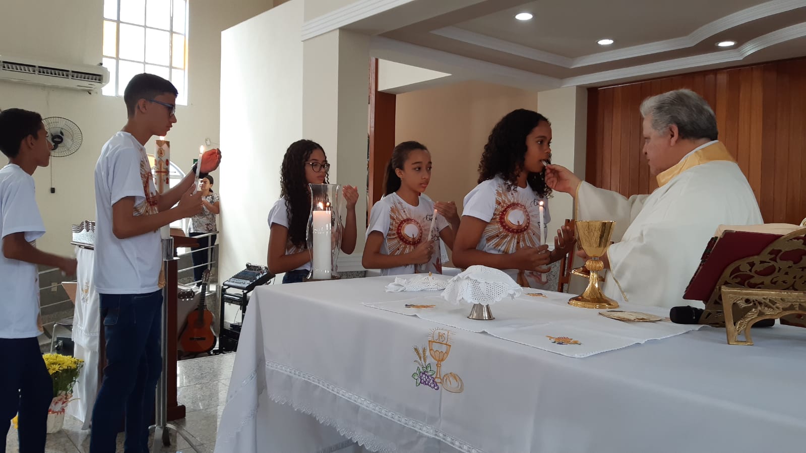 Na celebração, que foi presidida pelo Pe. Aloísio Vieira, Pároco da Paróquia São Geraldo, o sacerdote fez uma catequese sobre o Credo e sobre a importância dos catequizandos seguirem esses ensinamentos.