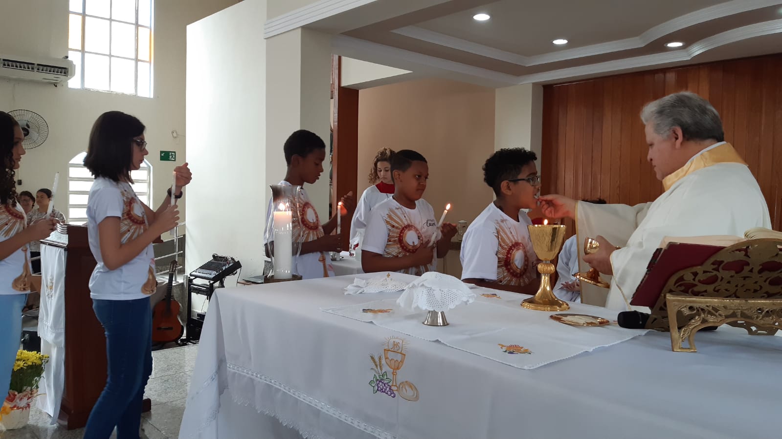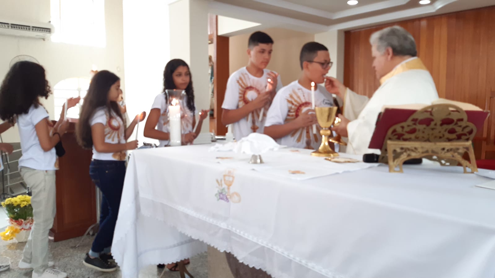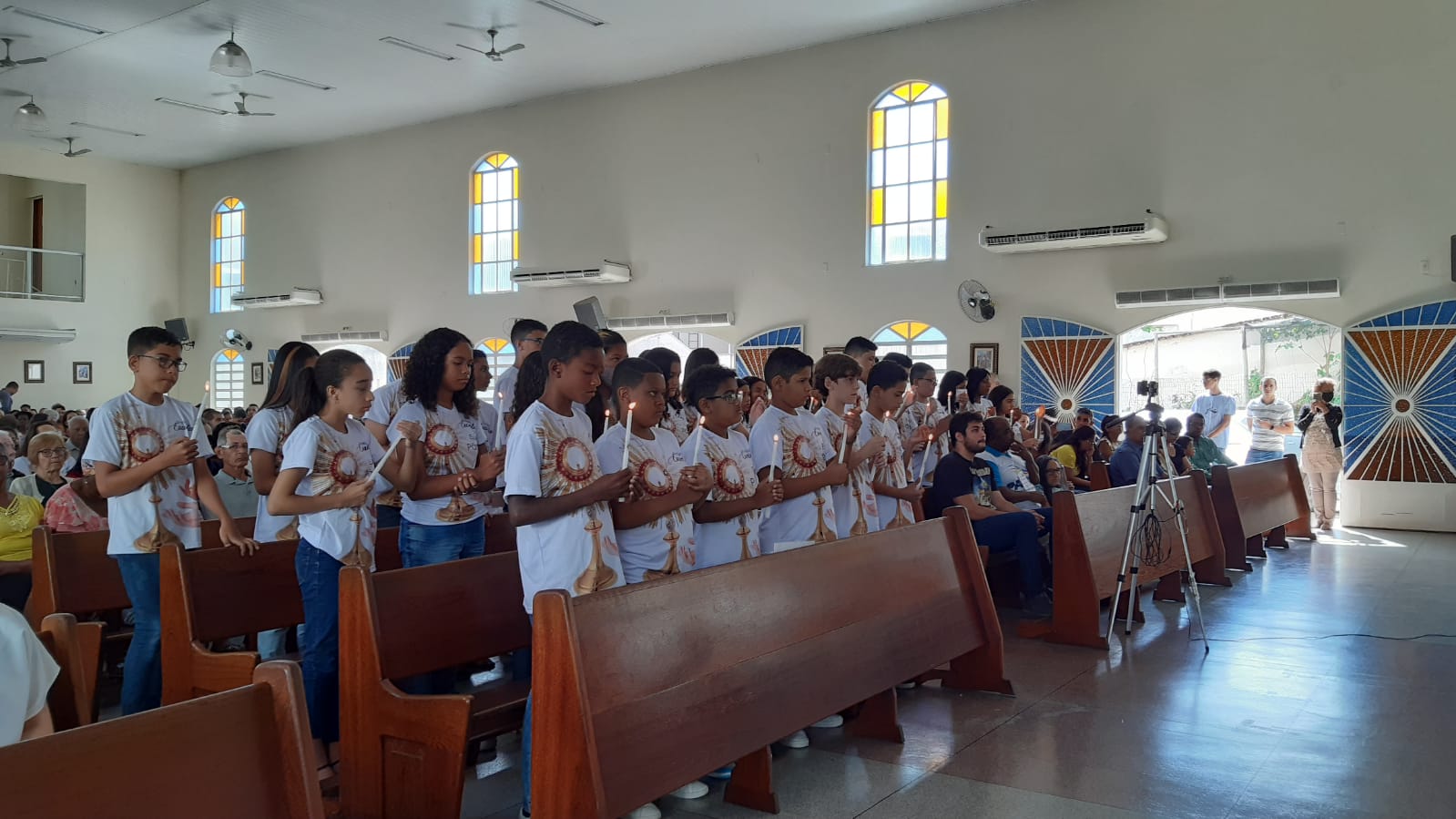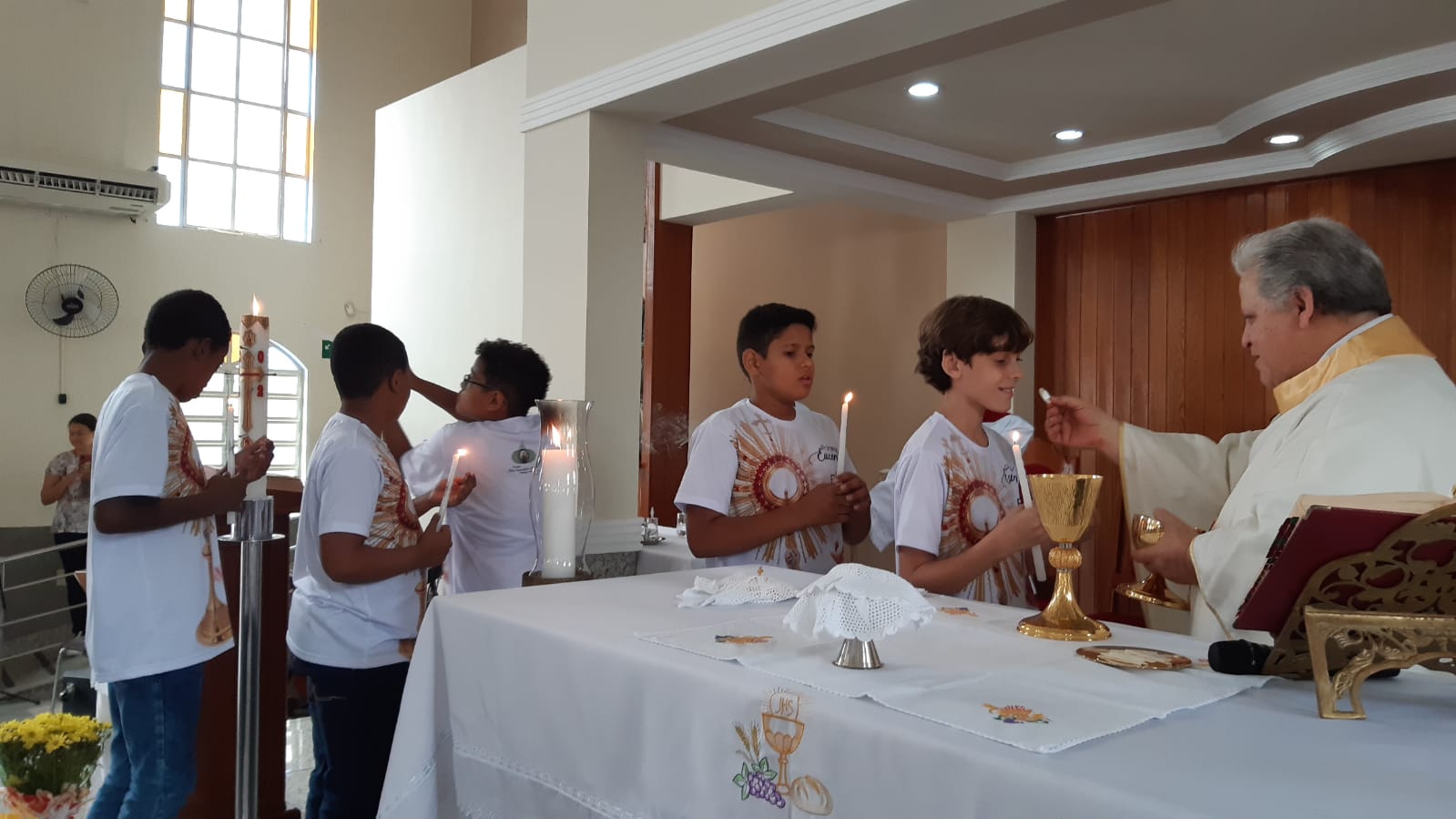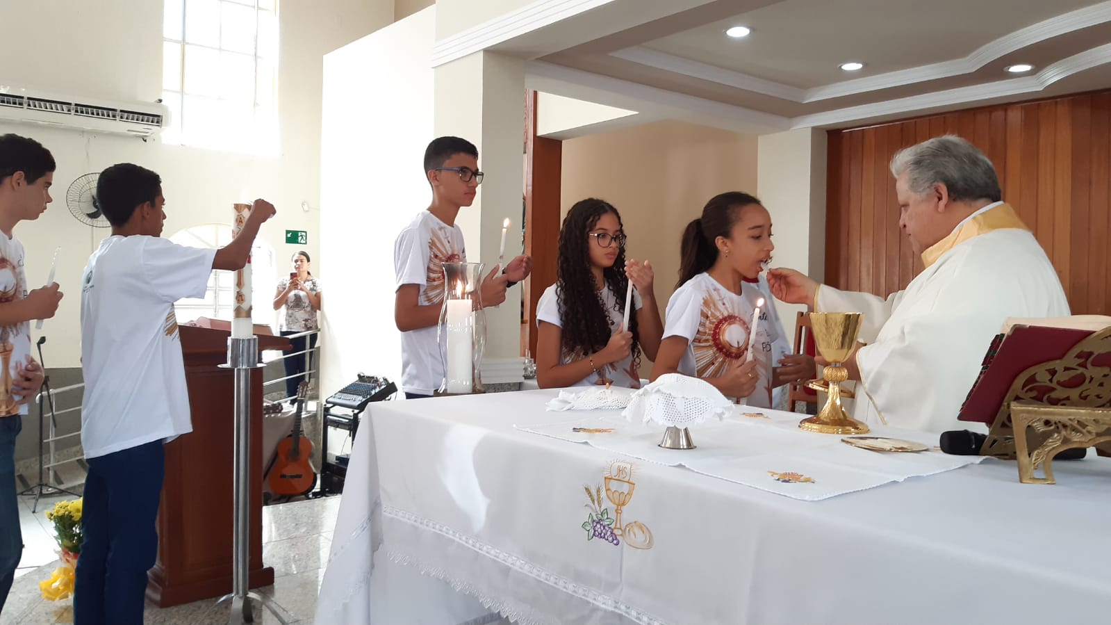 Na celebração, que foi presidida pelo Pe. Aloísio Vieira, Pároco da Paróquia São Geraldo, o sacerdote fez uma catequese sobre o Credo e sobre a importância dos catequizandos seguirem esses ensinamentos.
