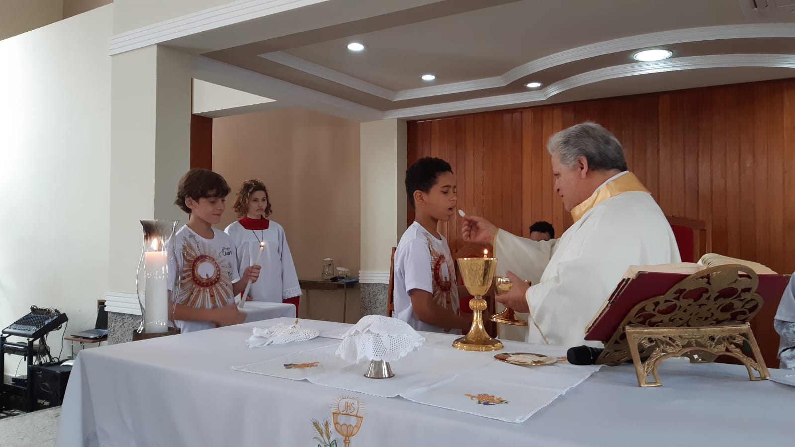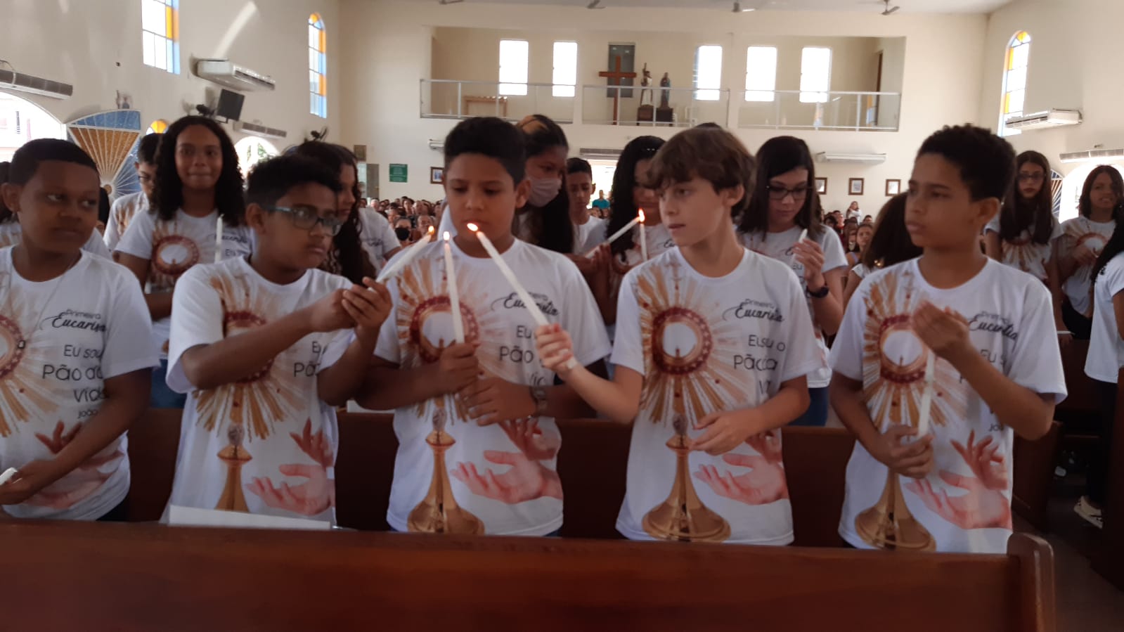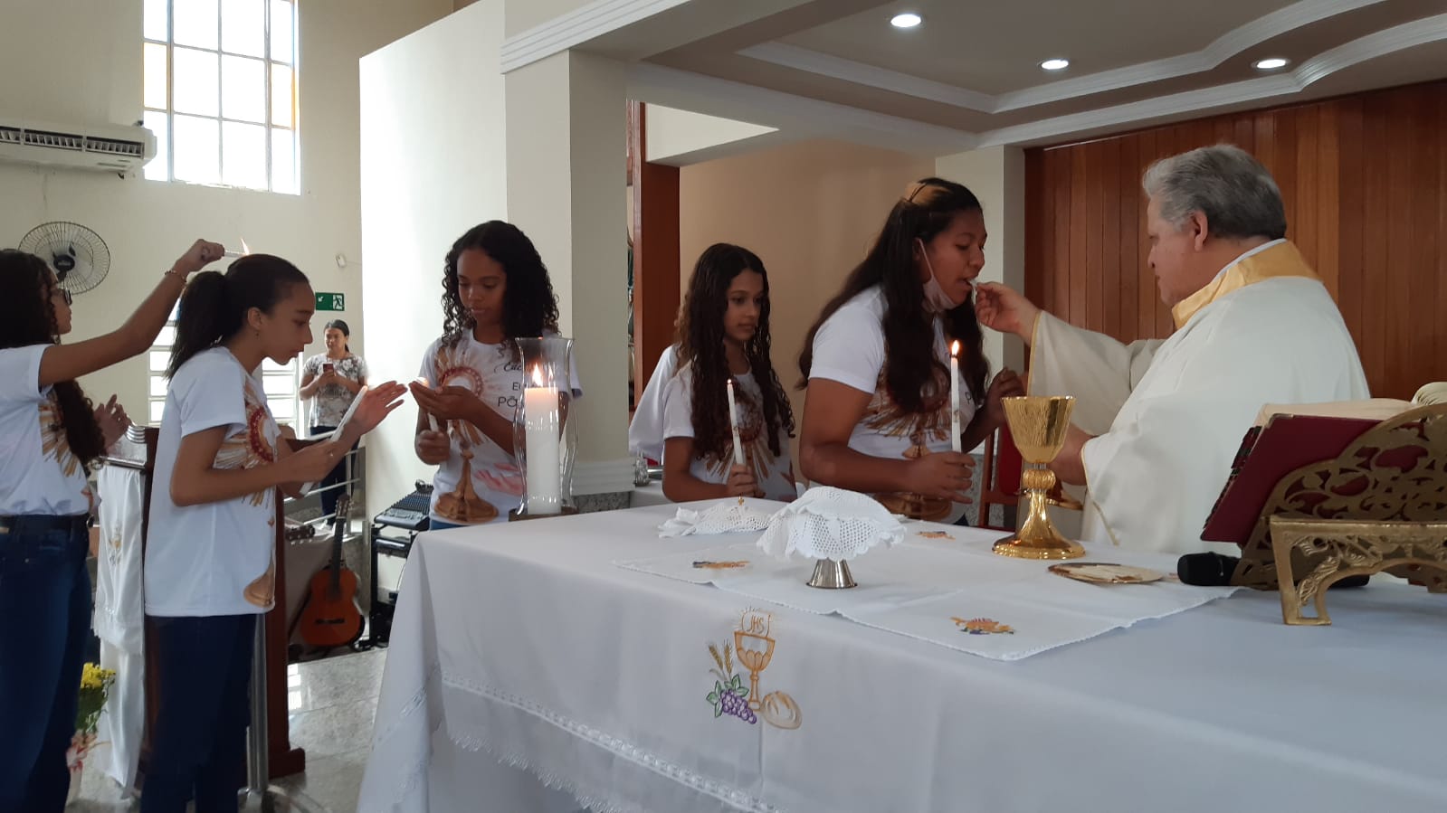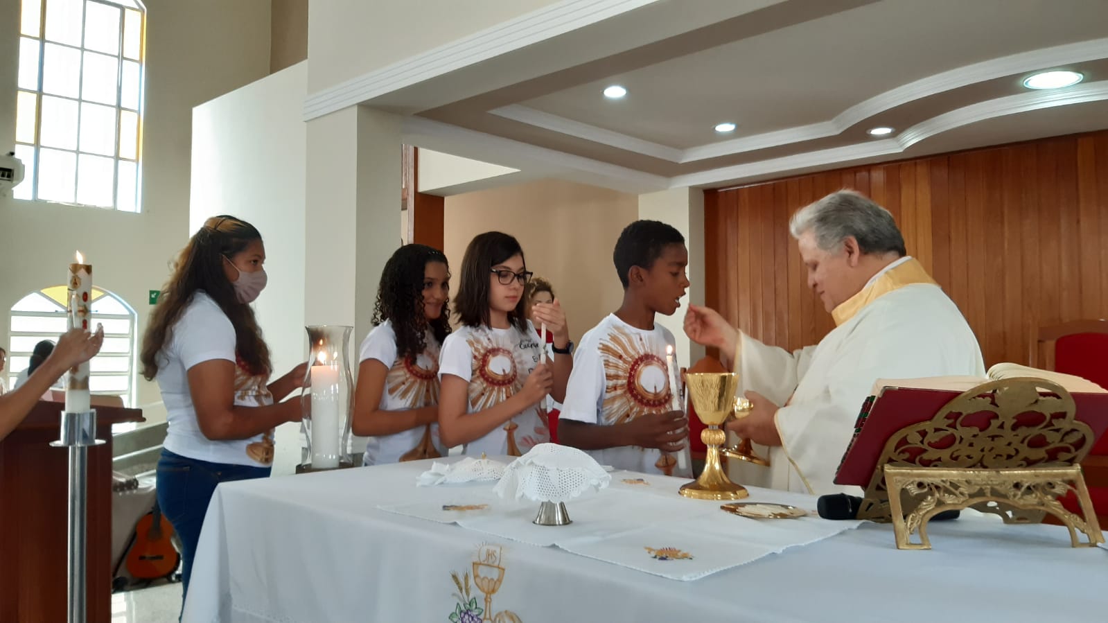Na celebração, que foi presidida pelo Pe. Aloísio Vieira, Pároco da Paróquia São Geraldo, o sacerdote fez uma catequese sobre o Credo e sobre a importância dos catequizandos seguirem esses ensinamentos.