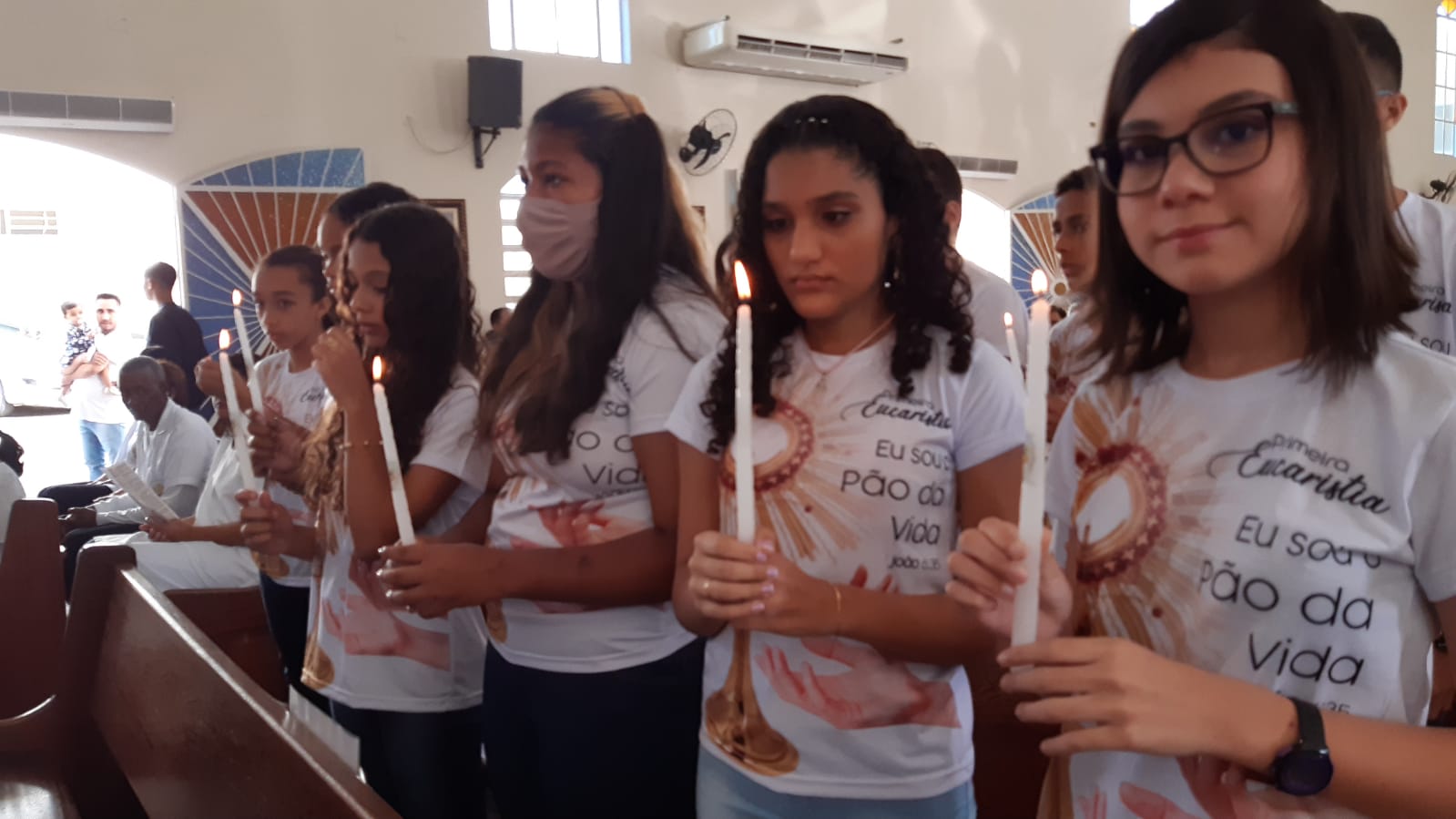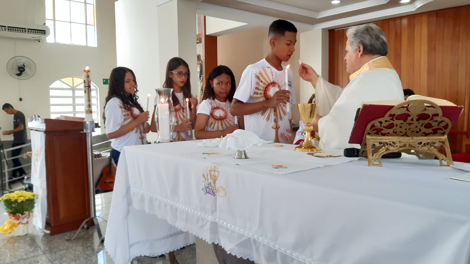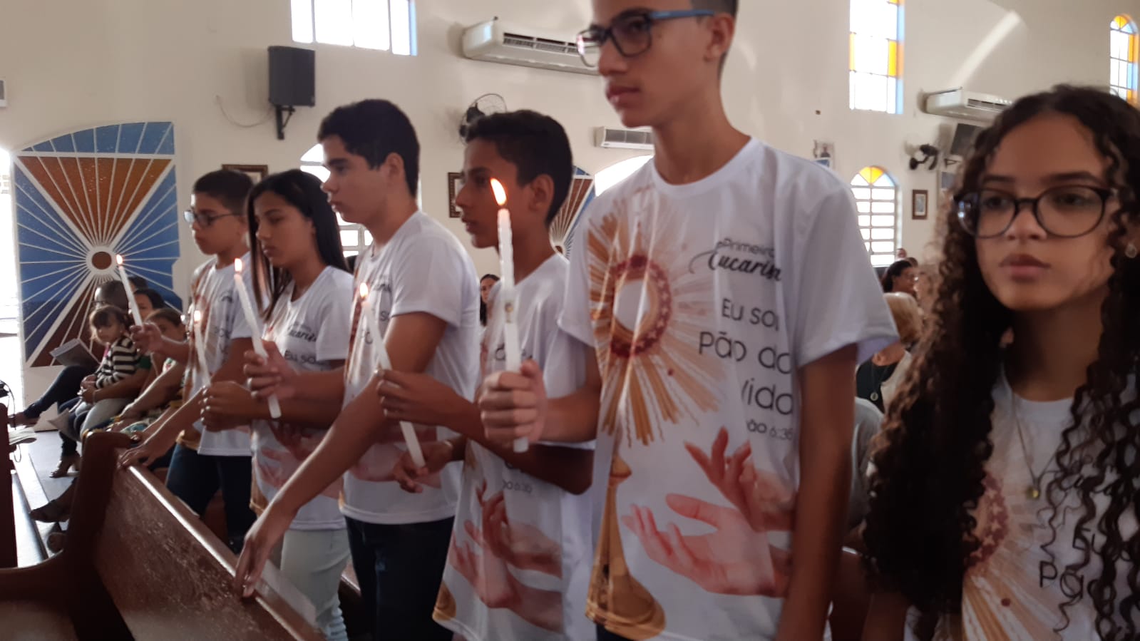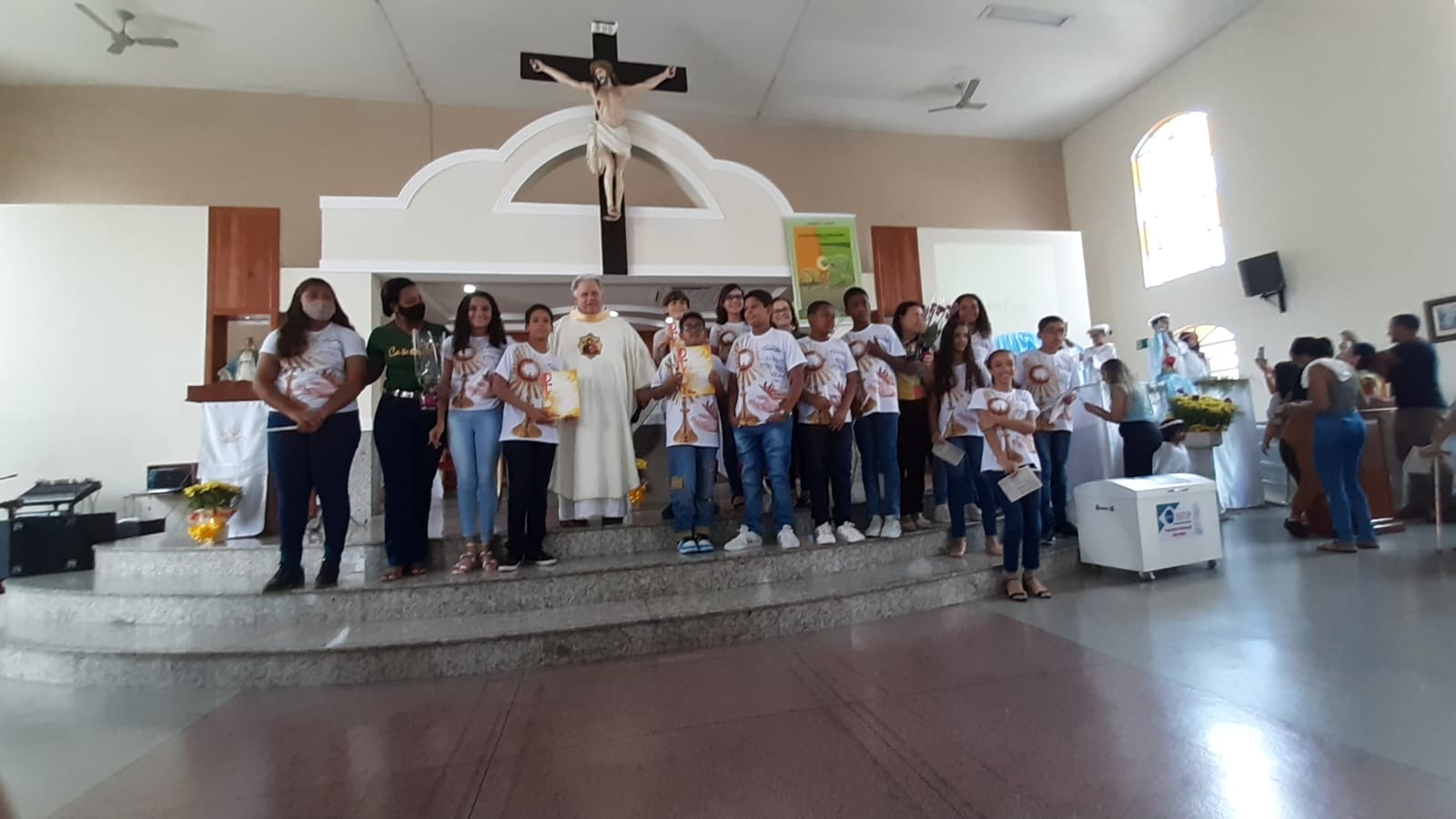 Neste domingo, 15 de maio, foi realizada a Missa Primeira Eucaristia, às 10h, na Matriz São Geraldo, ocasião que contou com a presença de vários familiares, para acompanhar e prestigiar as crianças. Além da Primeira Eucaristia, foi promovida também a Coroação à Nossa Senhora, realizada pelas crianças da Comunidade.