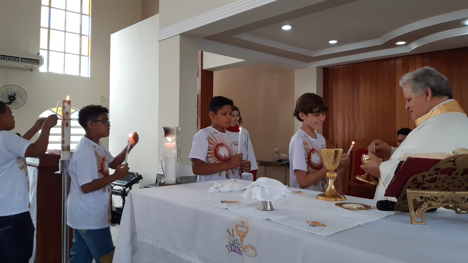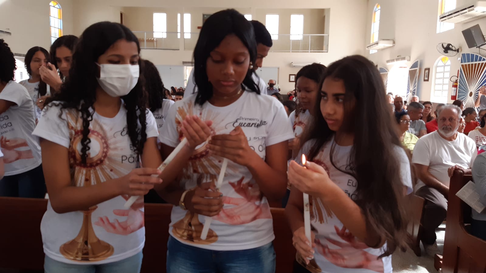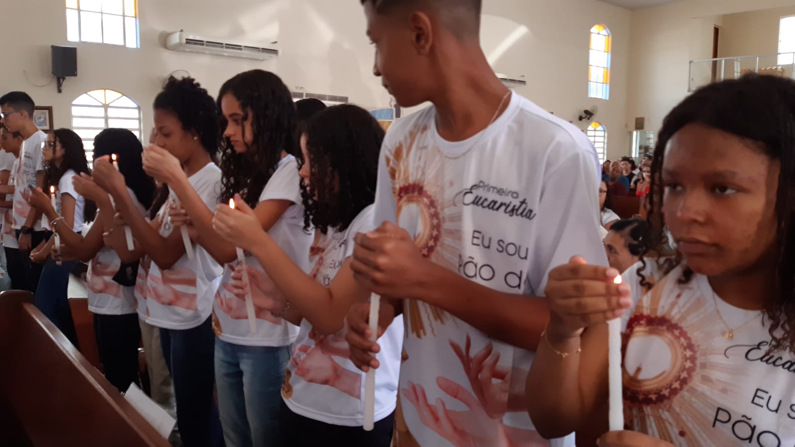 Neste domingo, 15 de maio, foi realizada a Missa Primeira Eucaristia, às 10h, na Matriz São Geraldo, ocasião que contou com a presença de vários familiares, para acompanhar e prestigiar as crianças. Além da Primeira Eucaristia, foi promovida também a Coroação à Nossa Senhora, realizada pelas crianças da Comunidade.