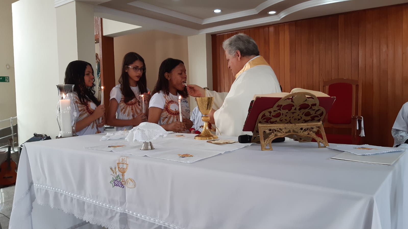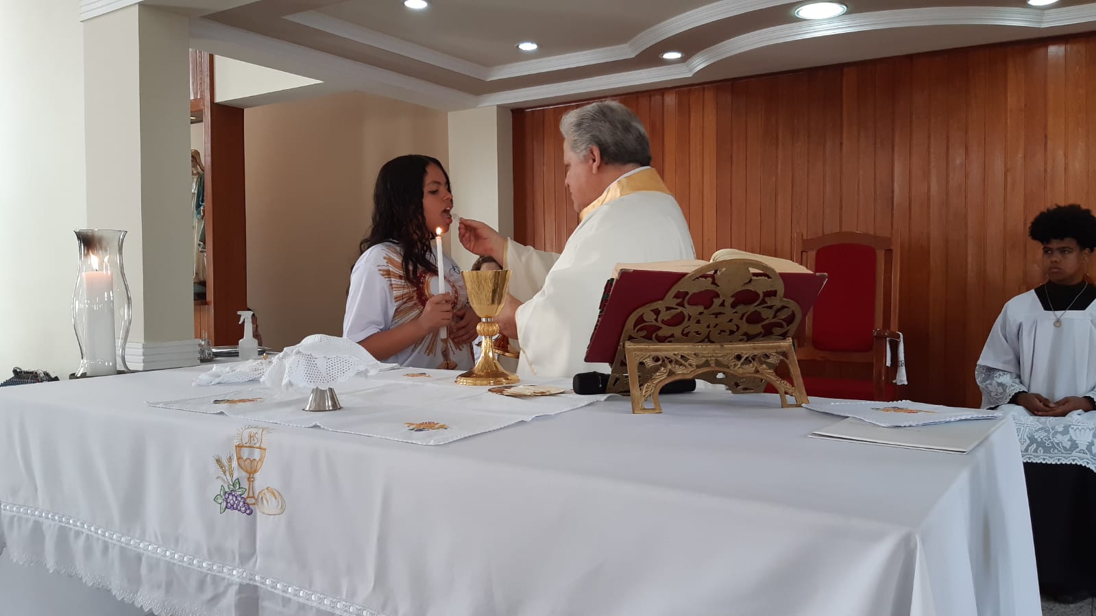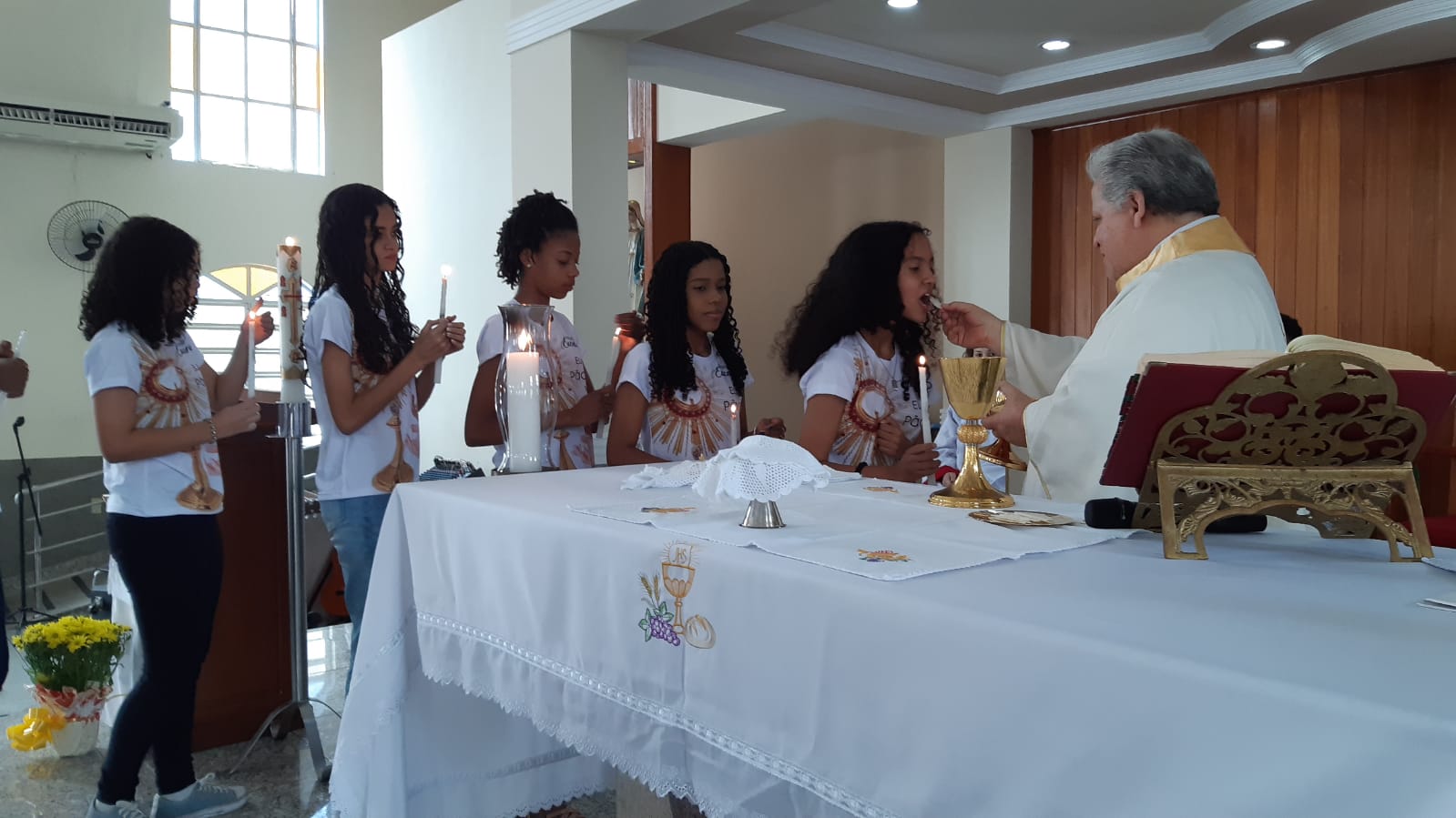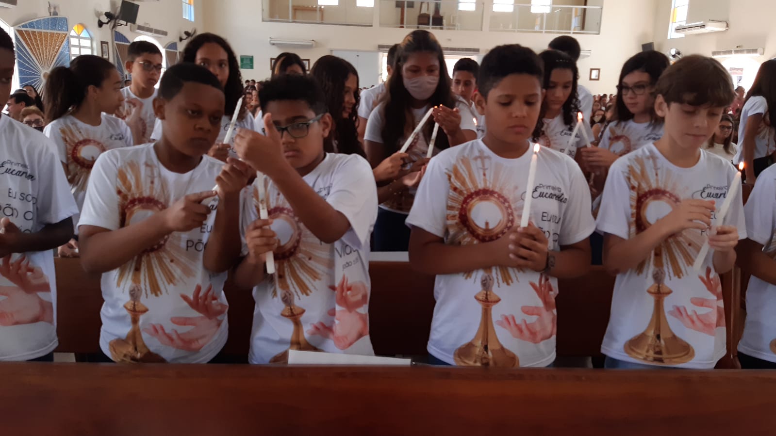 Neste domingo, 15 de maio, foi realizada a Missa Primeira Eucaristia, às 10h, na Matriz São Geraldo, ocasião que contou com a presença de vários familiares, para acompanhar e prestigiar as crianças. Além da Primeira Eucaristia, foi promovida também a Coroação à Nossa Senhora, realizada pelas crianças da Comunidade.