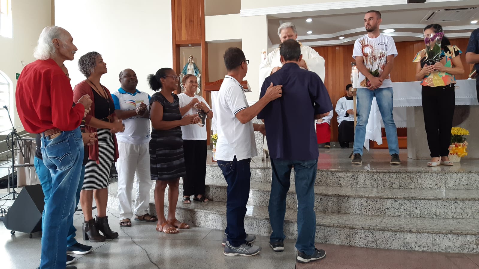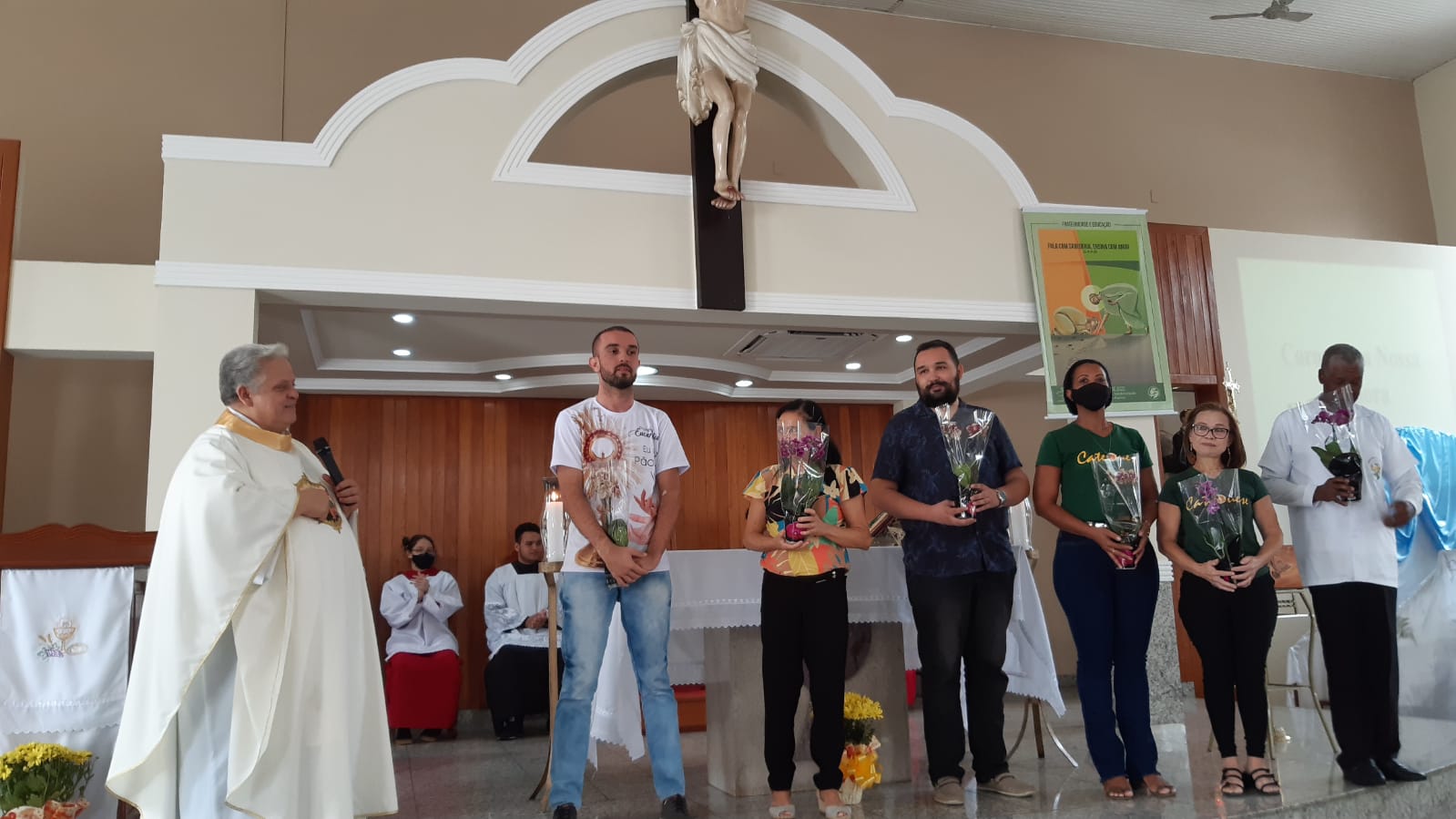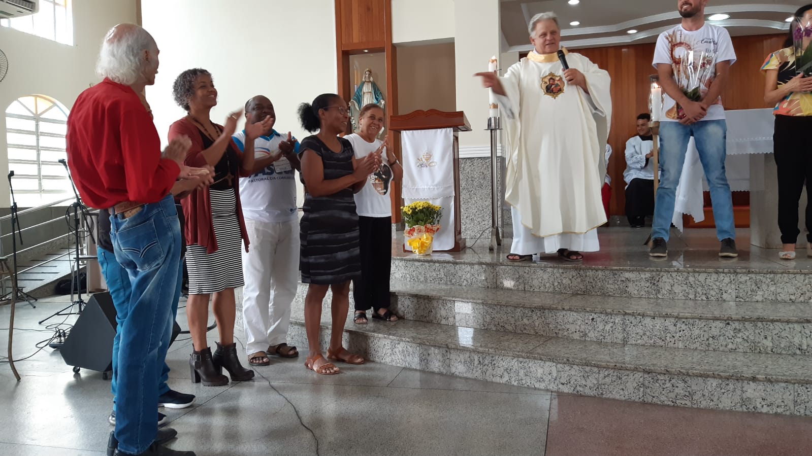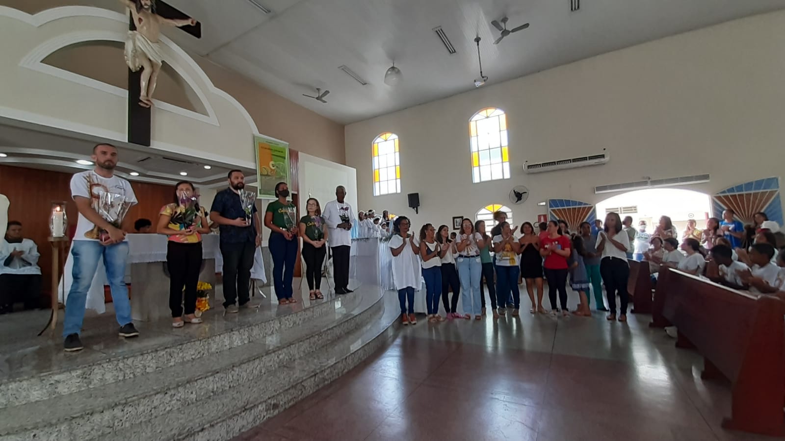 Ao final, os catequistas foram chamados até o presbitério, foi feito o convite para àquelas pessoas que desejassem ser catequistas, e também foram chamados à frente, os aniversariantes. Por fim, todos acompanharam a Coroação.