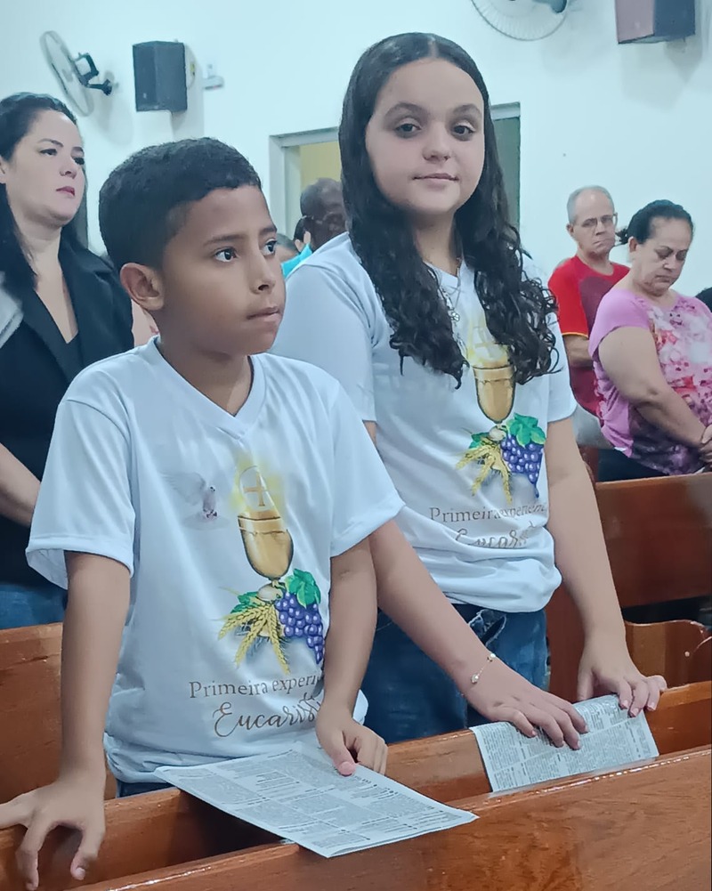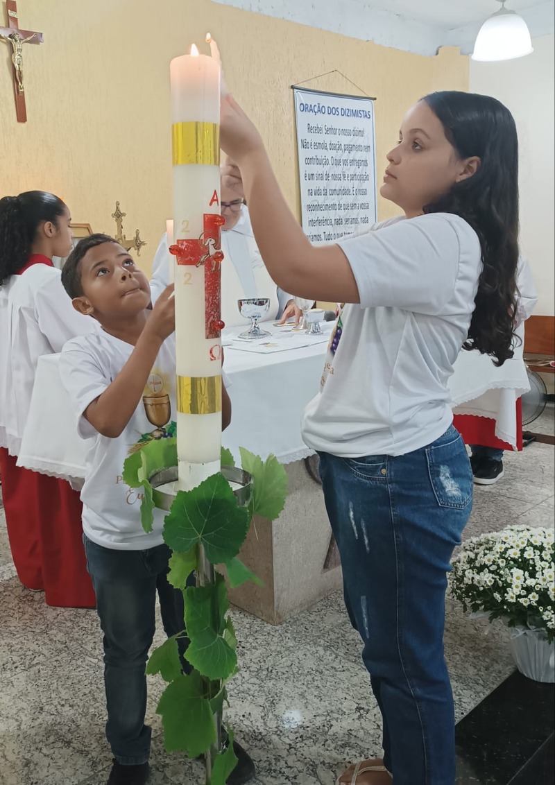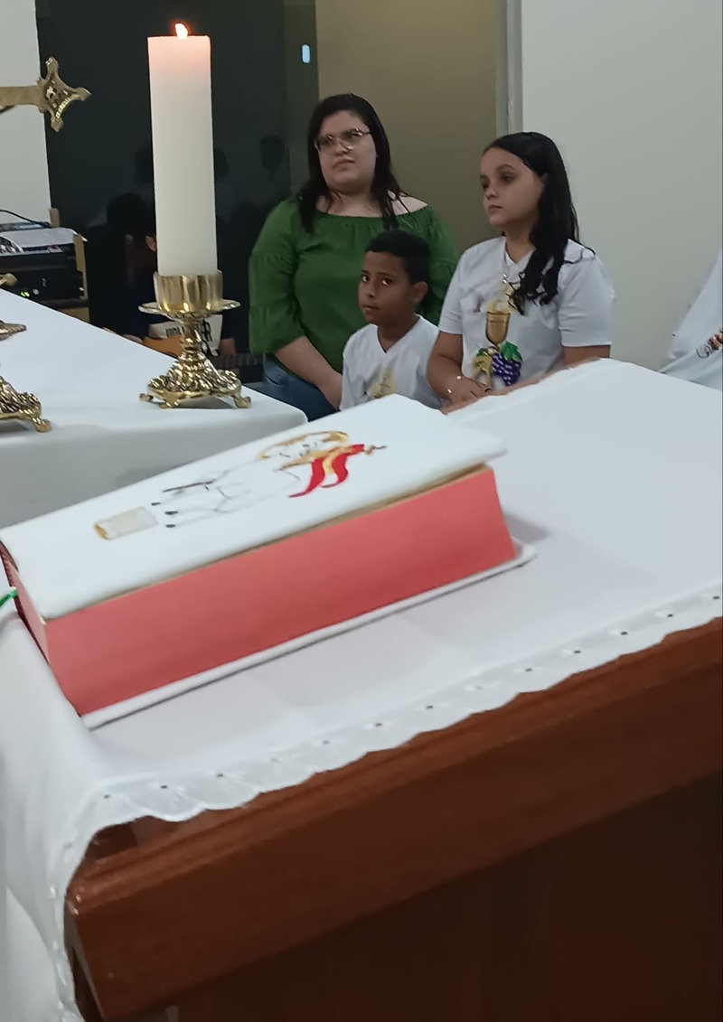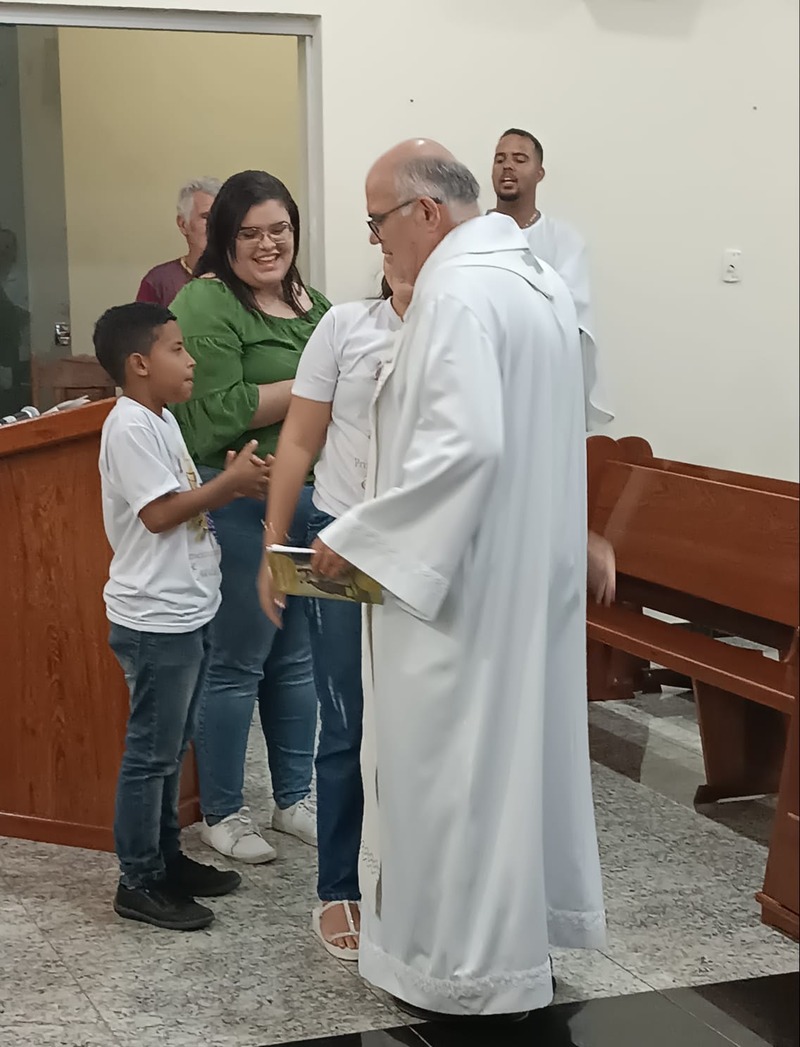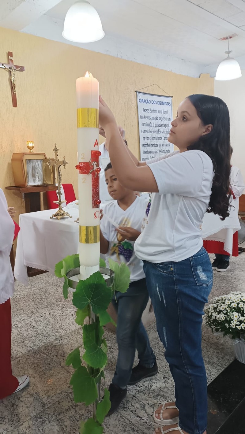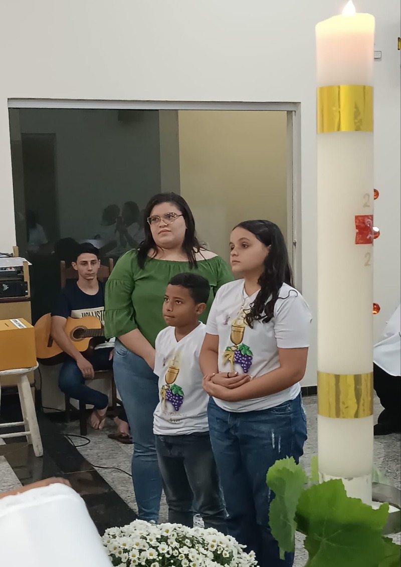 Entre estes catequizandos estavam Gustavo Ferreira Farias e Mellina Ferreira de Azevedo que foram preparados durante 5 anos com carinho pela equipe de catequese. Agradecimento à catequista da sexta-etapa Larissa Ketley da Silva Ricce.