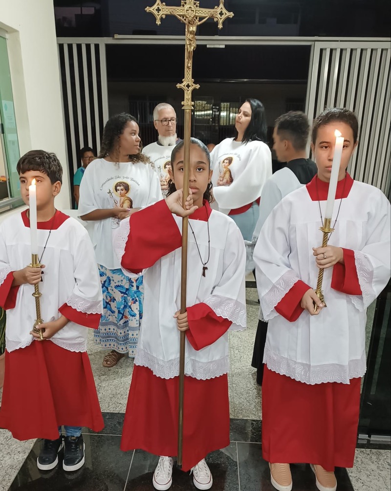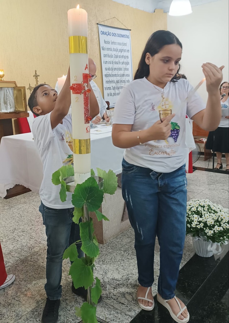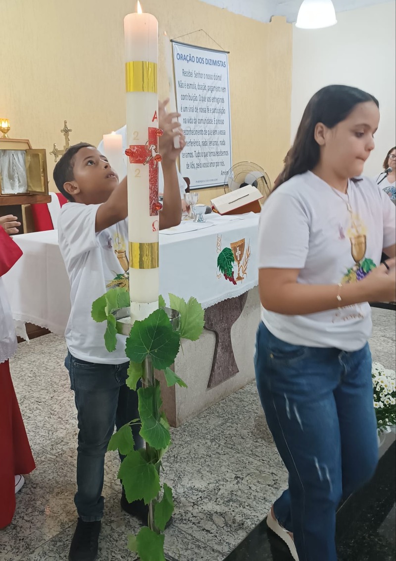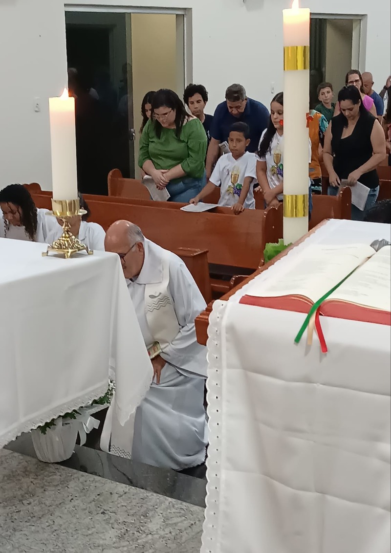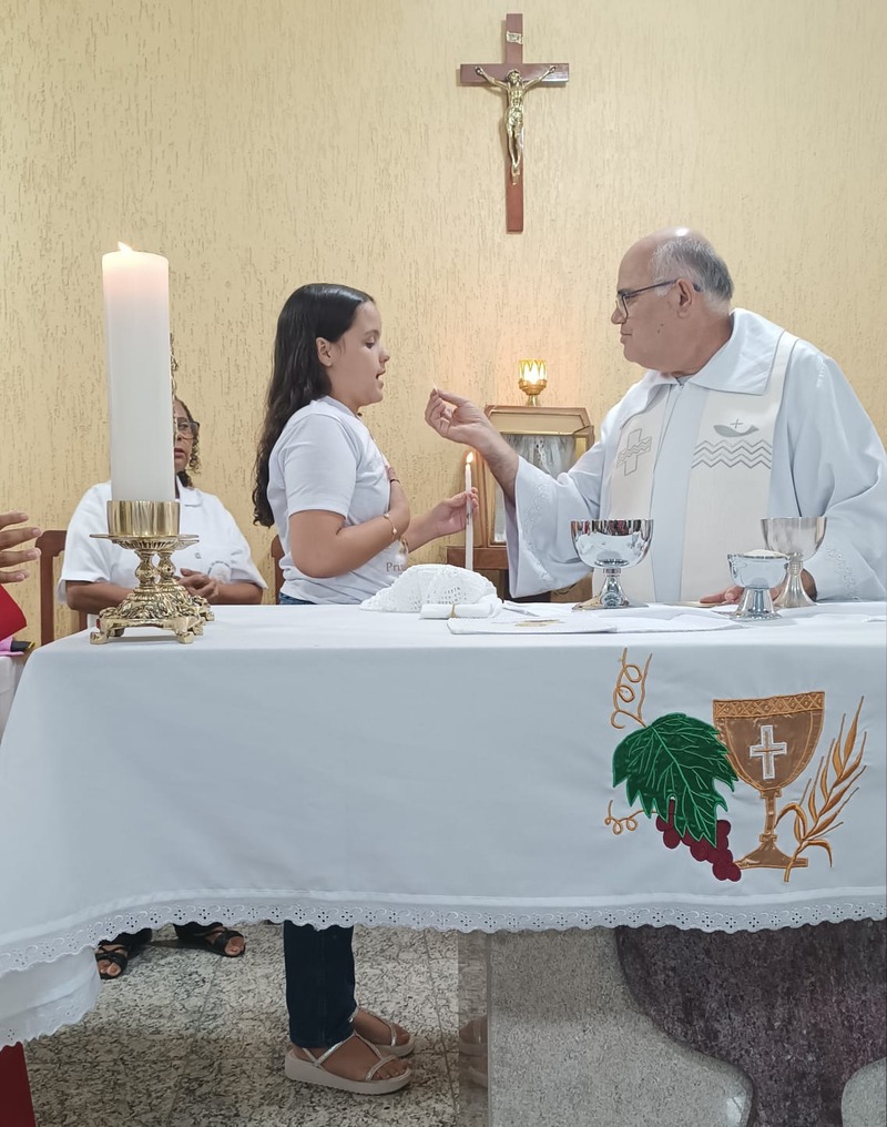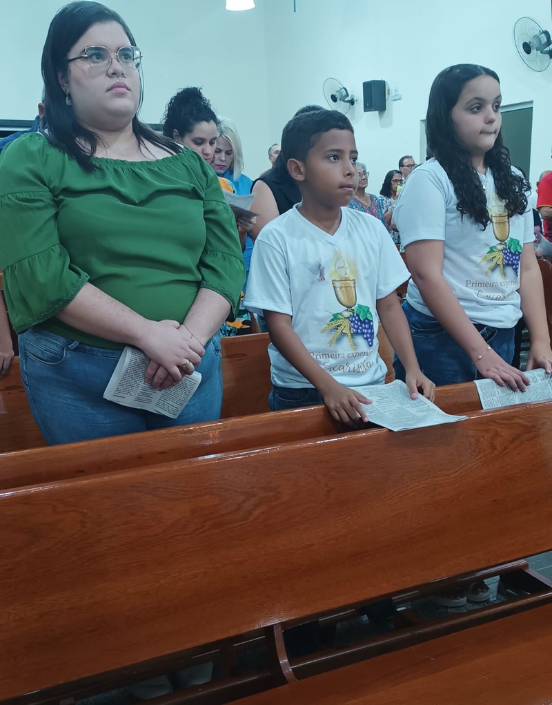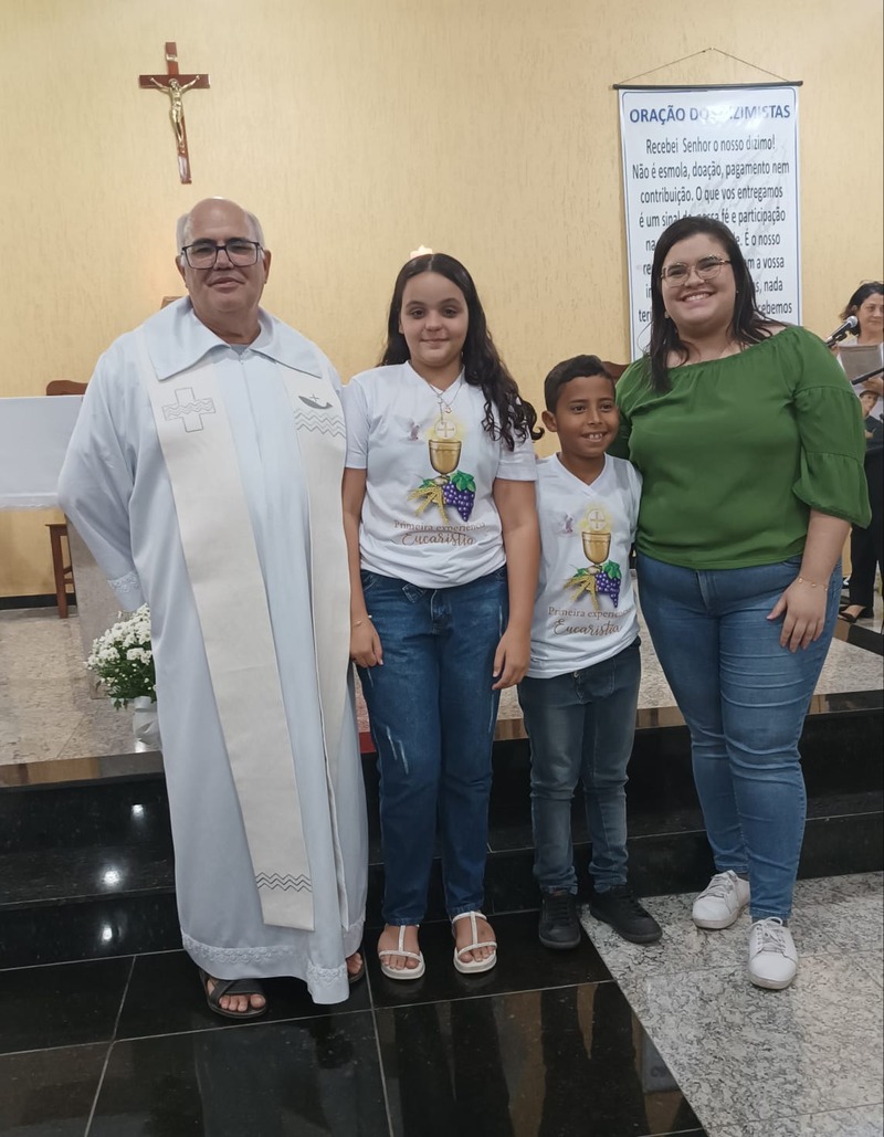 Entre estes catequizandos estavam Gustavo Ferreira Farias e Mellina Ferreira de Azevedo que foram preparados durante 5 anos com carinho pela equipe de catequese. Agradecimento à catequista da sexta-etapa Larissa Ketley da Silva Ricce.