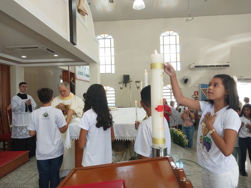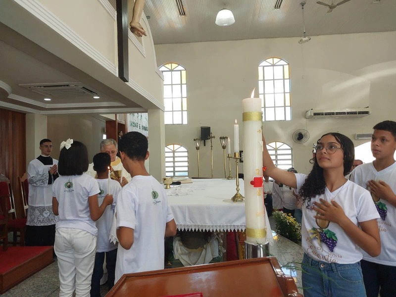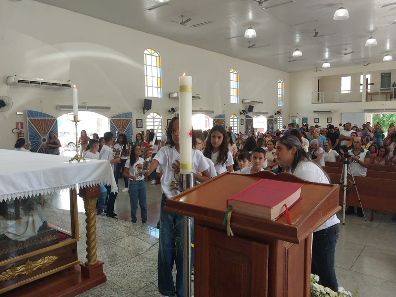 De acordo com informações repassadas, foram 23 crianças juntos aos seus familiares nesta experiência de Fé. Para os Catequistas dessas crianças, se trata de um momento ímpar, porque este ato acompanha cada criança em todo momento de vida, principalmente nos futuros compromissos que elas assumirão na vida pastoral dentro da Comunidade.