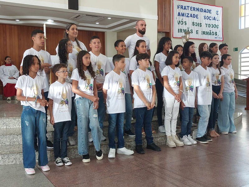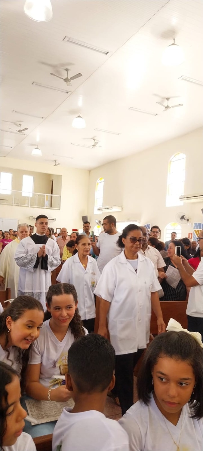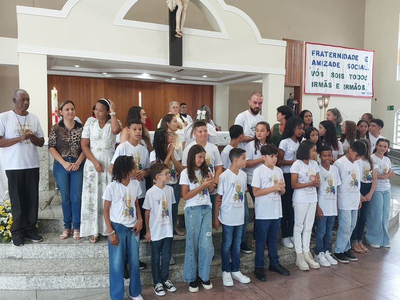 Aconteceu no domingo do dia 21 de abril de 2024 às 10 horas da manhã na Matriz São Geraldo Magela, a Primeira Experiência Eucarística para as crianças da Catequese da Comunidade São Geraldo Magela. Momento de muita importância, devido a presença de vários familiares, acompanhando as crianças em sua primeira experiência Eucarística.