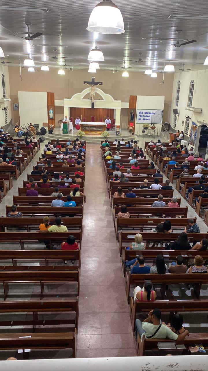Na última quinta-feira, 13 de outubro, iniciamos o Tríduo em honra ao nosso padroeiro São Geraldo, em nossa Matriz. Neste dia, a programação contou com Missa e exposição do Santíssimo às 7h, na responsabilidade da Comunidade São Geralda, adoração ao Santíssimo das 08h às 19h, Benção do Santíssimo às 19h, seguida de Missa por responsabilidade da Comunidade Maria de Nazaré.