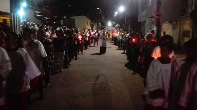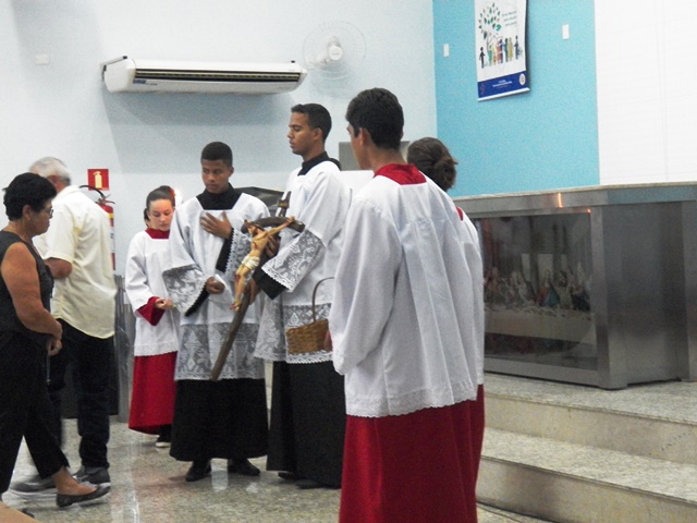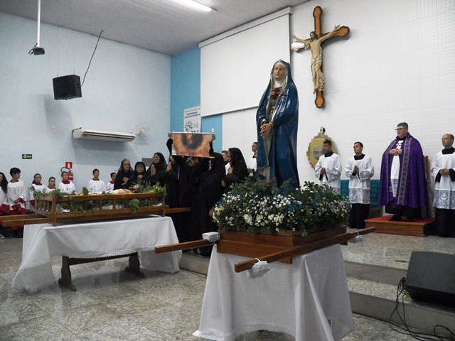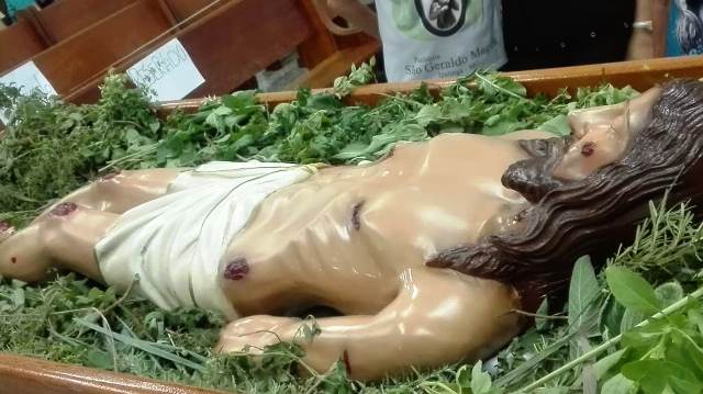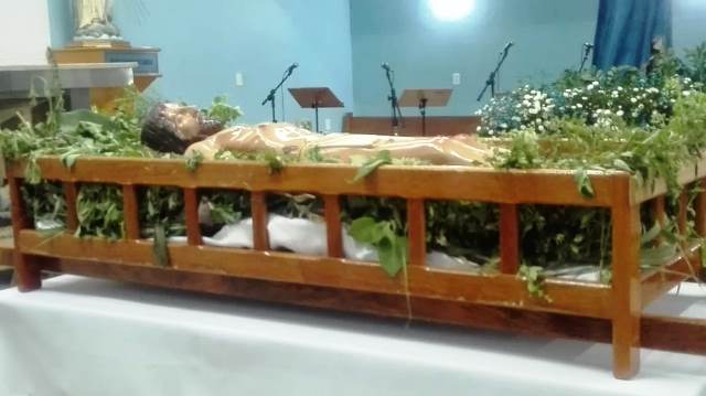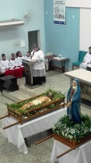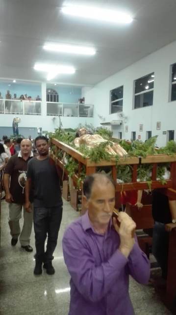 A Paróquia São Geraldo Magela em Ipatinga (MG) depois de uma tarde de adoração da Santa Cruz e de algumas confissões a noite aconteceu a procissão do Senhor Morto. Um dia de silencio, de reflexão, de dor para lembrar que Jesus sofreu e morreu pelos homens. Essa é a mensagem da Celebração da Paixão de Cristo, do Sermão das Tete Palavras e da Procissão do Senhor Morto.