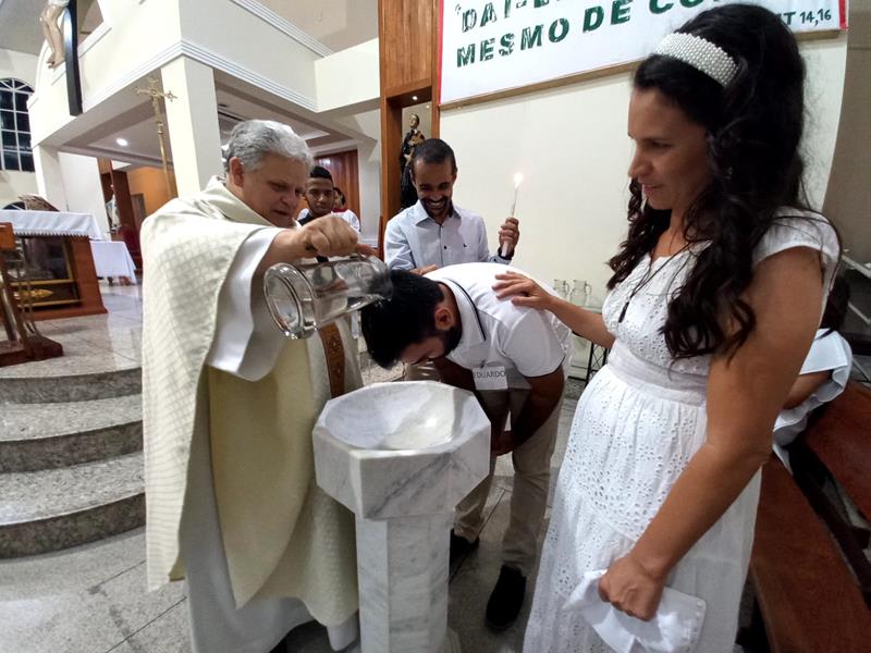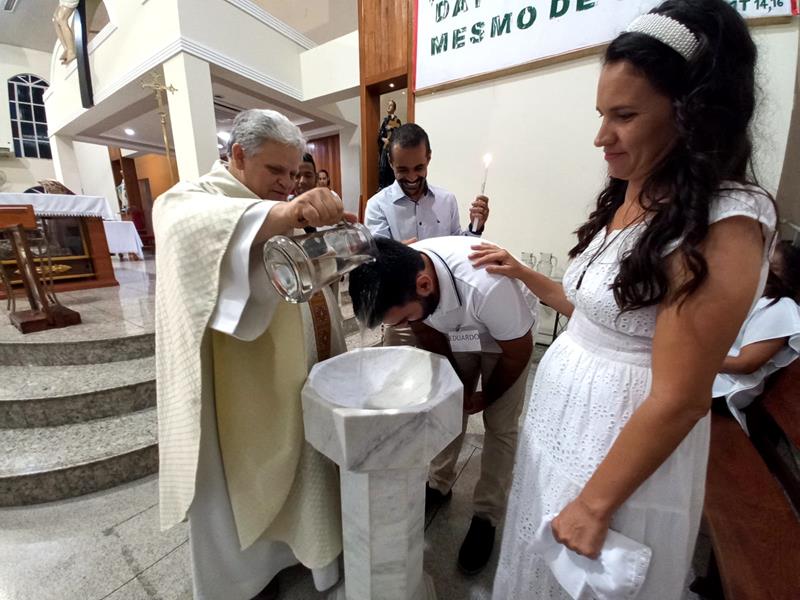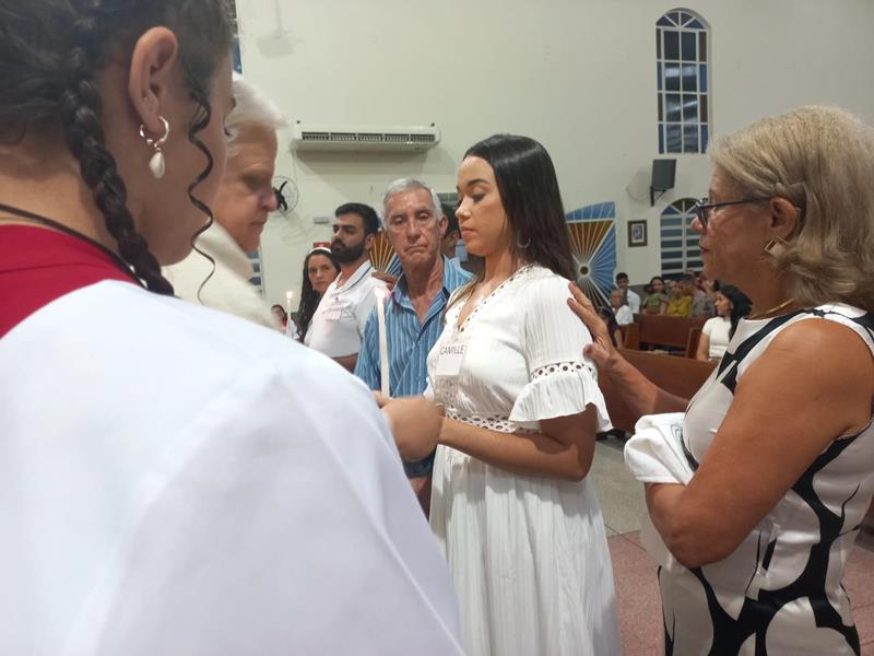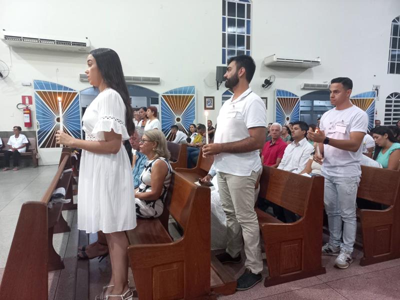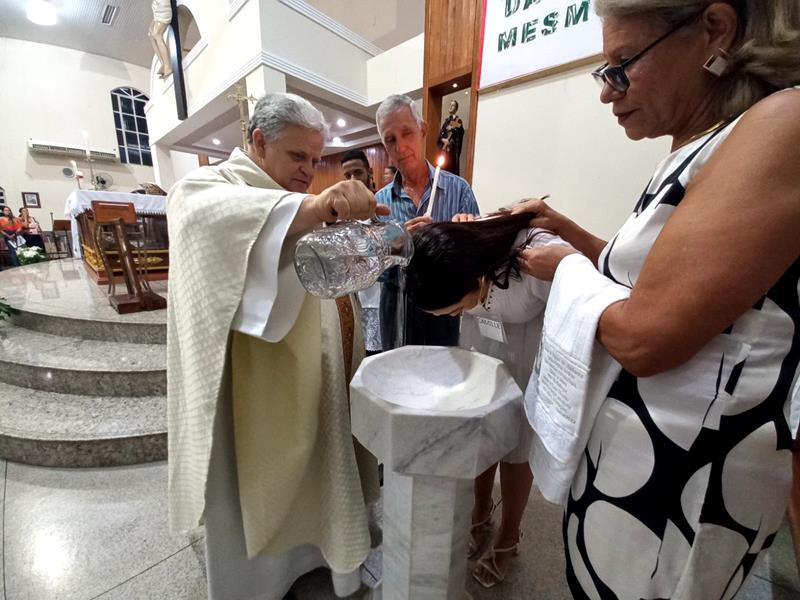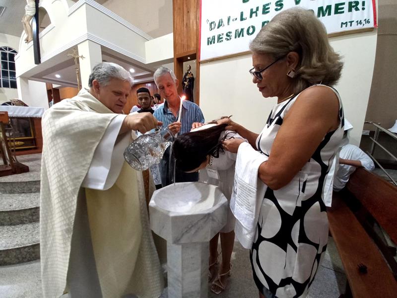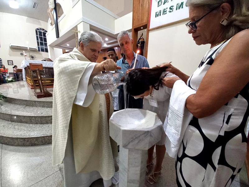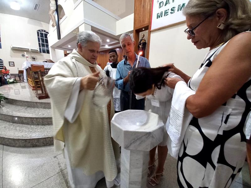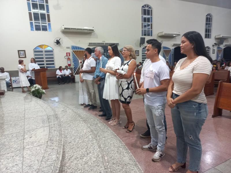 Os adultos se prepararam, participando dos encontros do IVCA (Iniciação à Vida Cristã com Adultos). Os pais, padrinhos, introdutores e os catecúmenos se emocionaram com a liturgia e com os ritos.