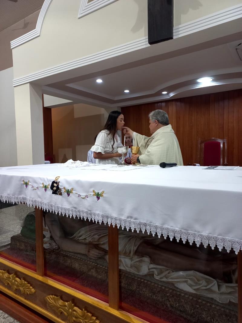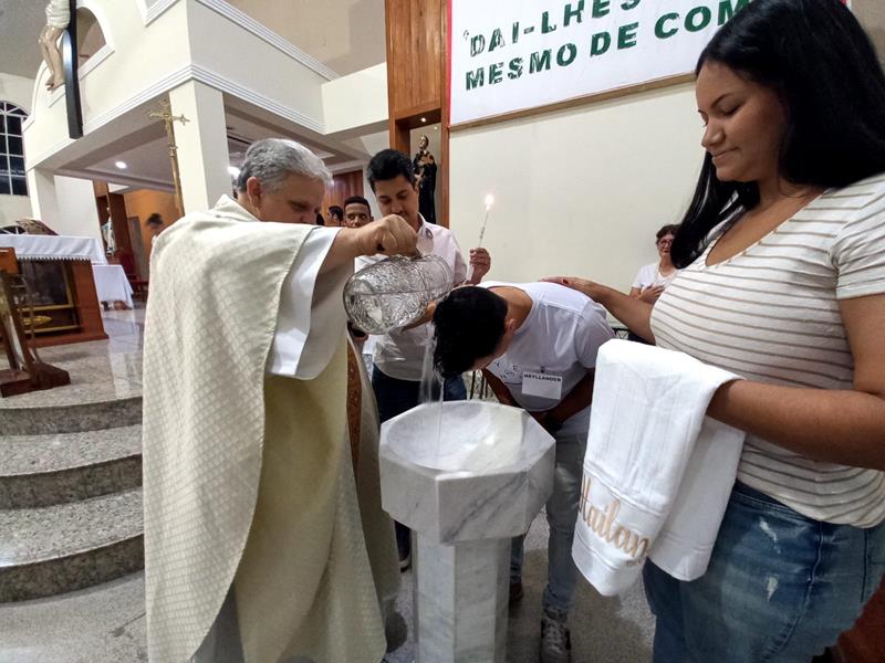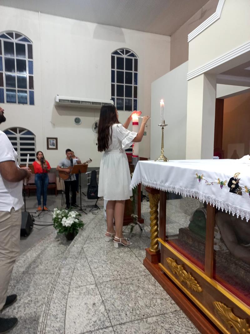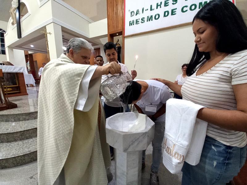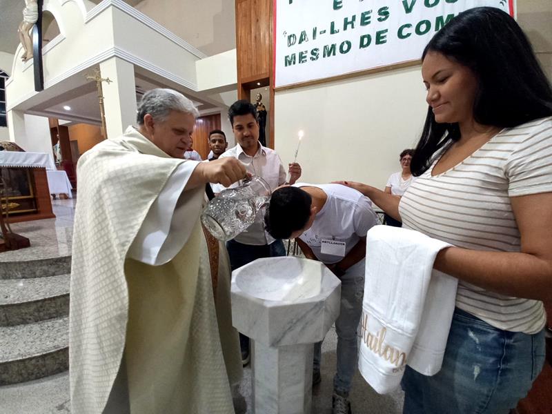 Os neófitos, Camille, Eduardo, Hayllander, agora têm um compromisso de continuar essa caminhada, numa etapa que chamamos de MISTAGOGIA, onde vão conhecer as diversas pastorais e serviço das comunidades e vão se colocar a serviço, porque o cristão deve seguir o exemplo de Jesus e se colocar a SERVIÇO.