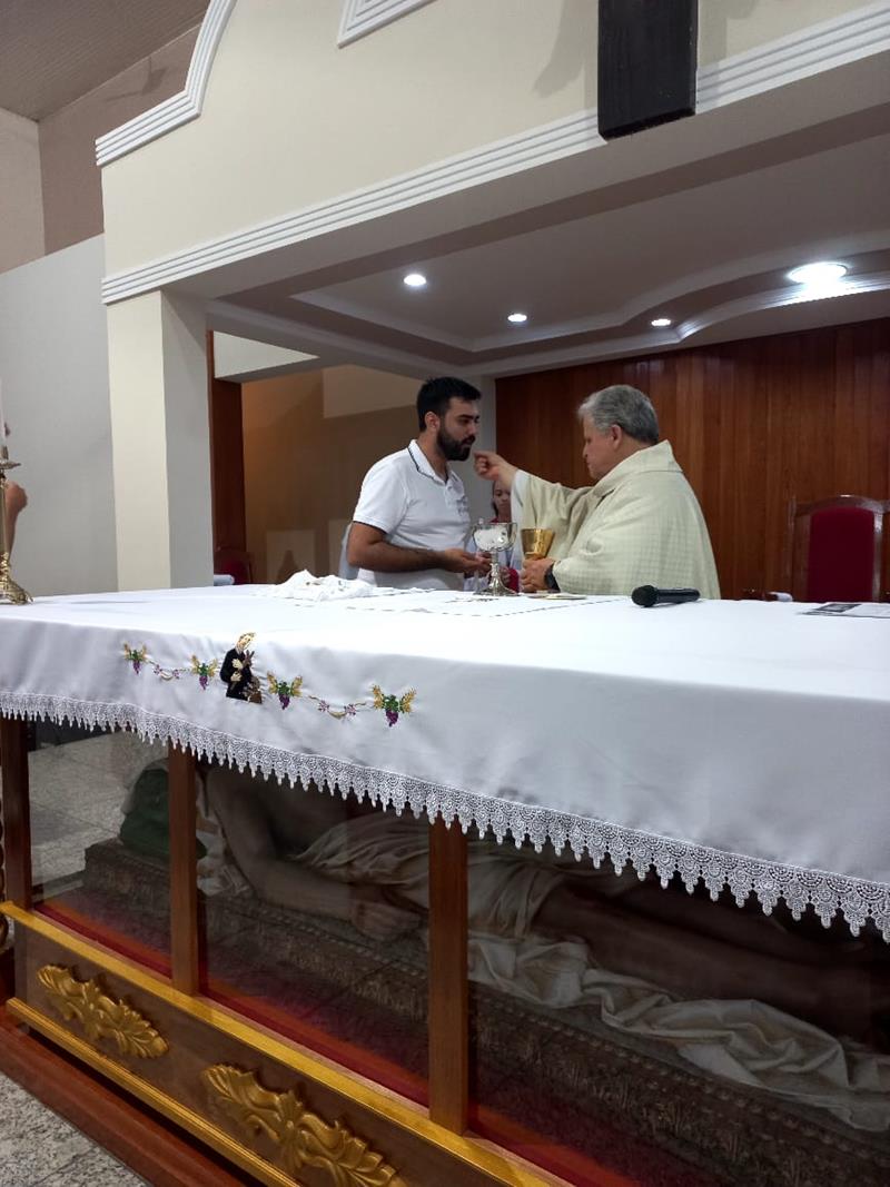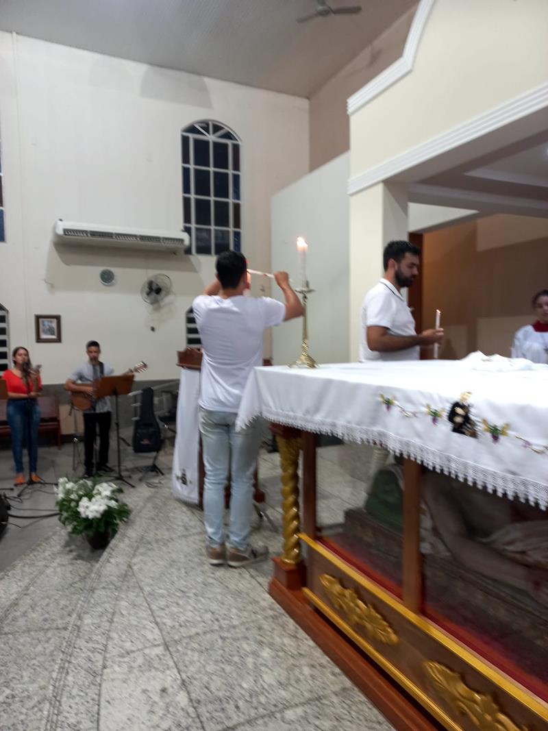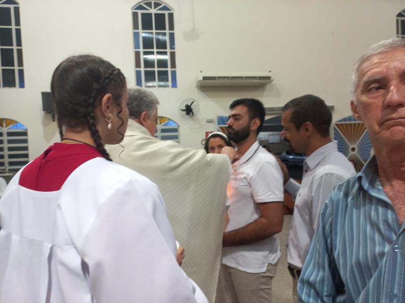 Durante a homília, padre Aloísio lembrou as primeiras comunidades cristãs, onde as pessoas iam aderindo a fé cristã pelos testemunhos dos cristãos e assim pediam o batismo. Ser sal e luz no mundo, fermento na massa é missão de cada um nós, batizados, crismados e que comungamos o corpo e sangue de Cristo.