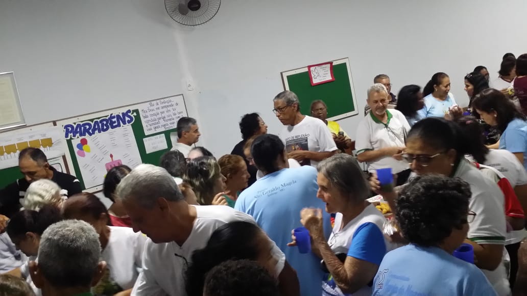 Ainda para celebrar este último encontro do ano dos Grupos de Reflexão, e gerar um clima de descontração e maior interação entre os presentes, após a Missa foi realizada uma confraternização com partilha que alegrou a todos.