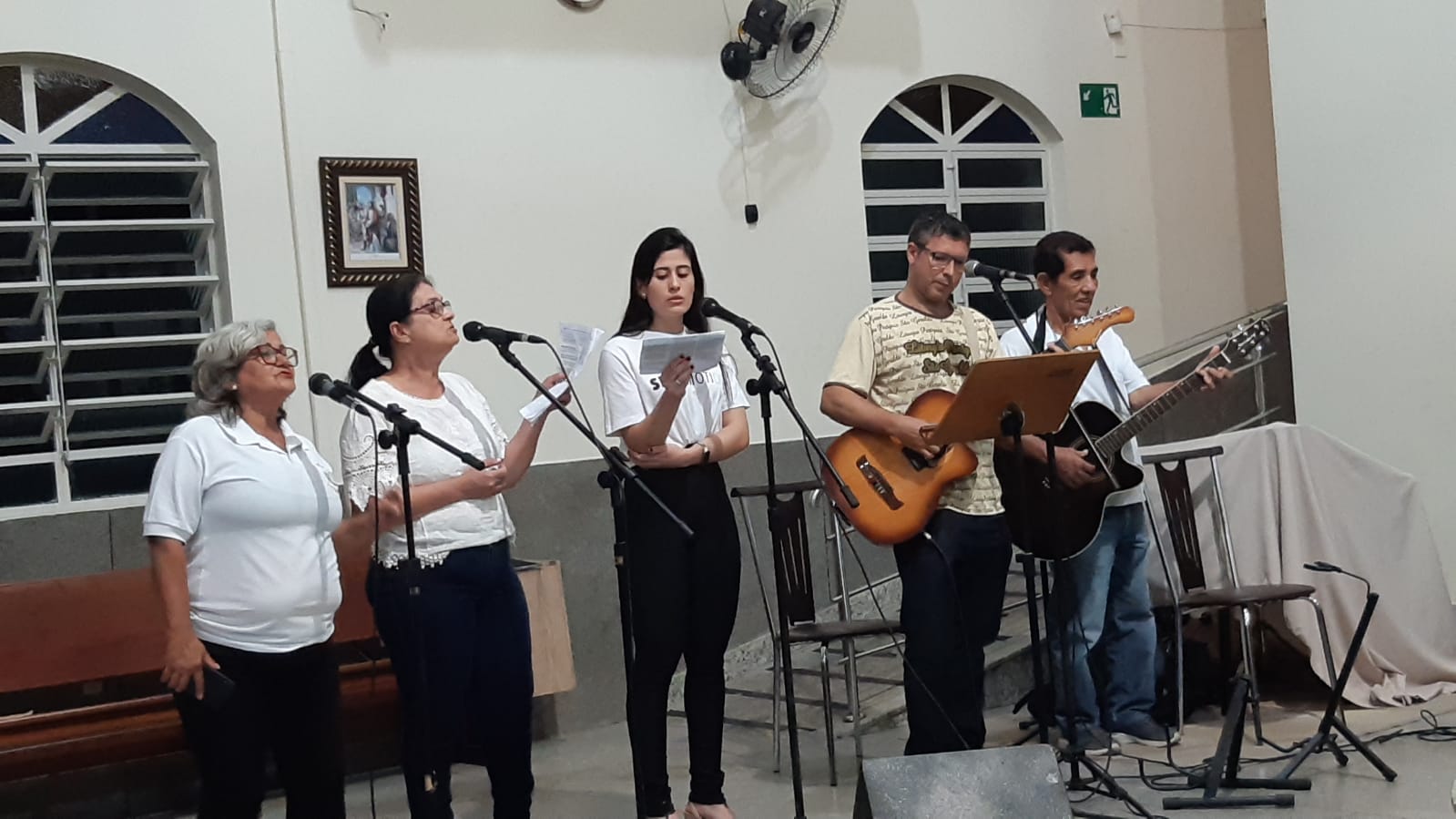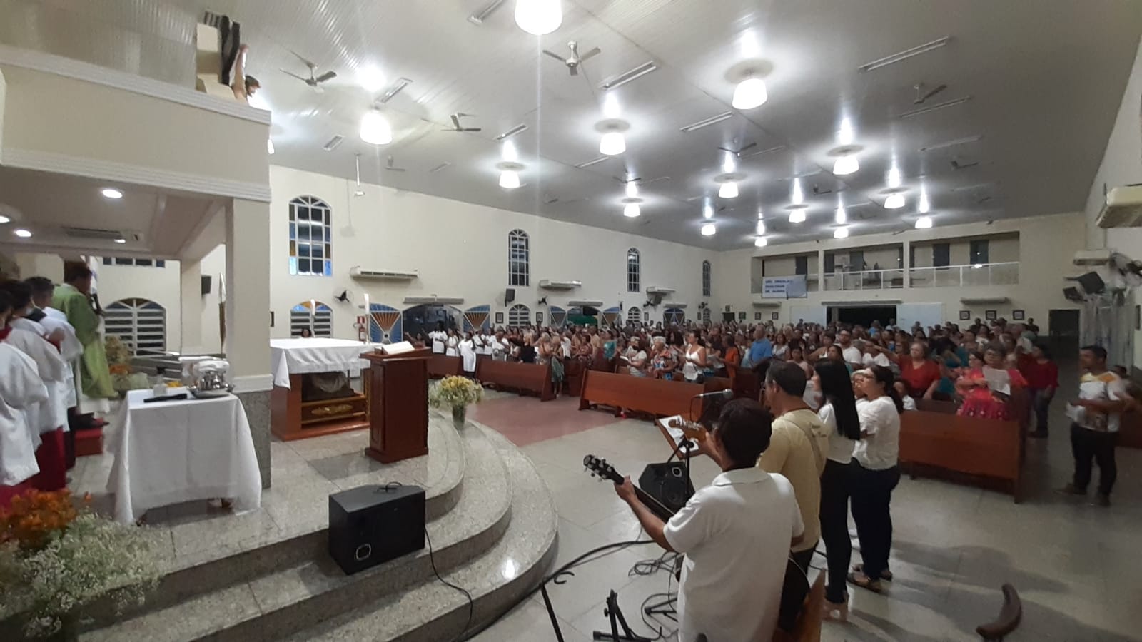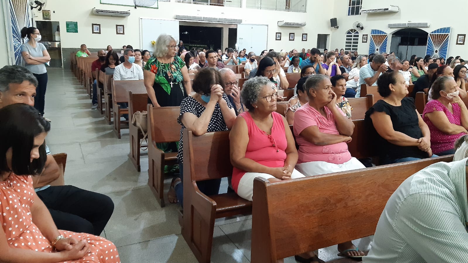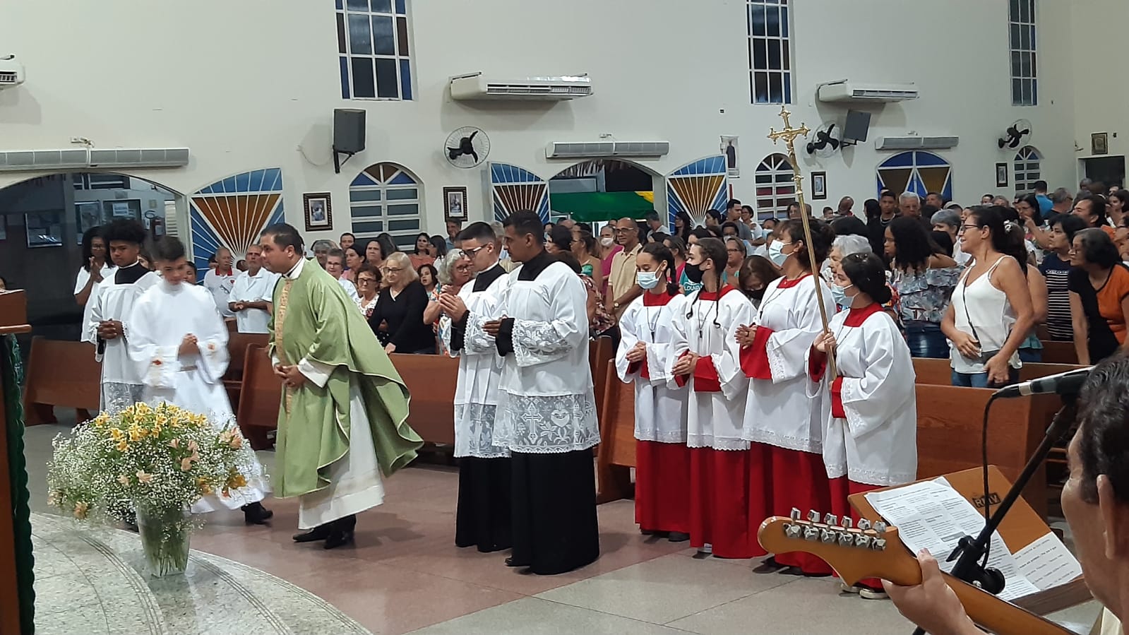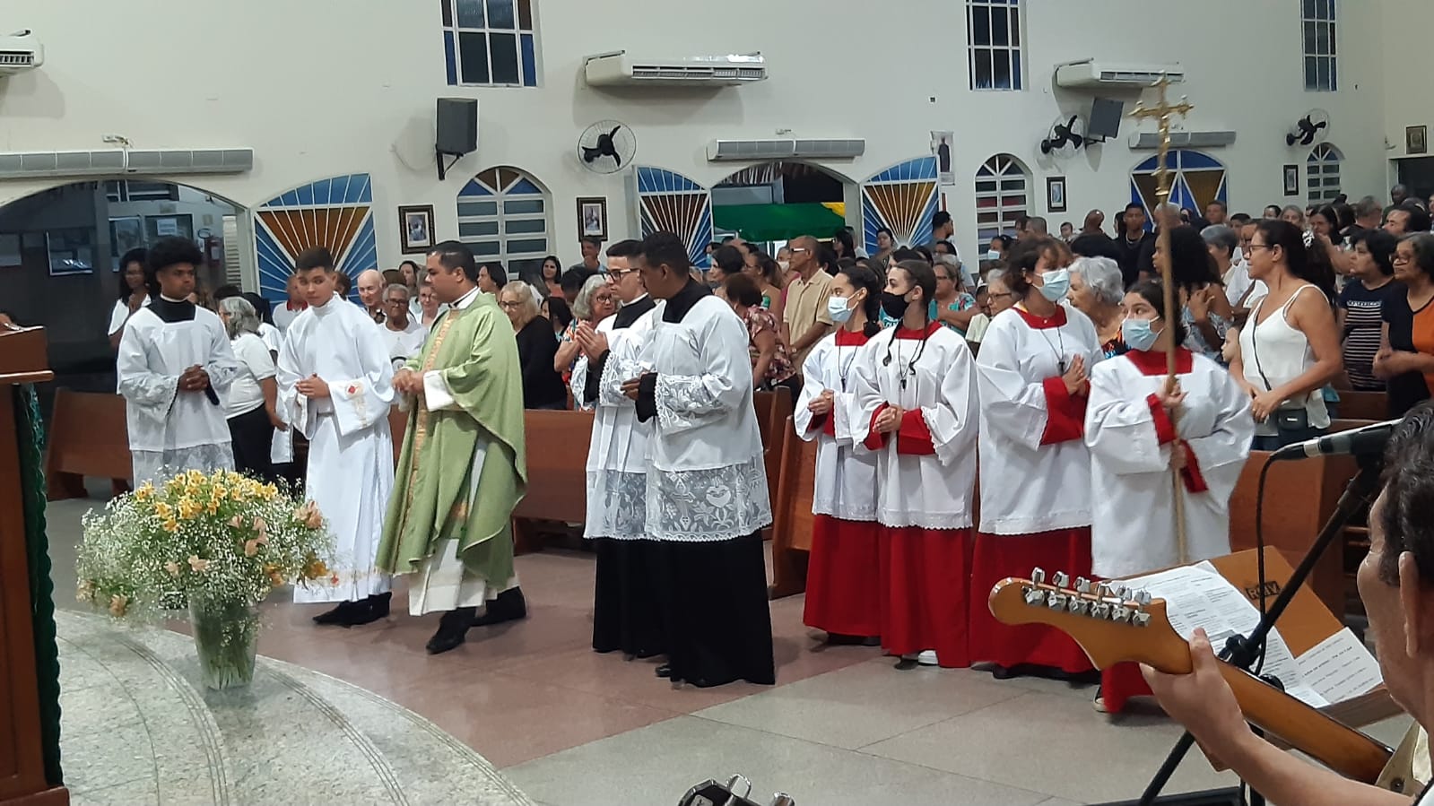 Presidida pelo Pe. Adriano Mendes de Pinho, filho da Paróquia São Geraldo Magela, a celebração eucarística da noite teve o oferecimento de flores de todos os jovens, catequizandos na sétima, oitava e nona etapa.