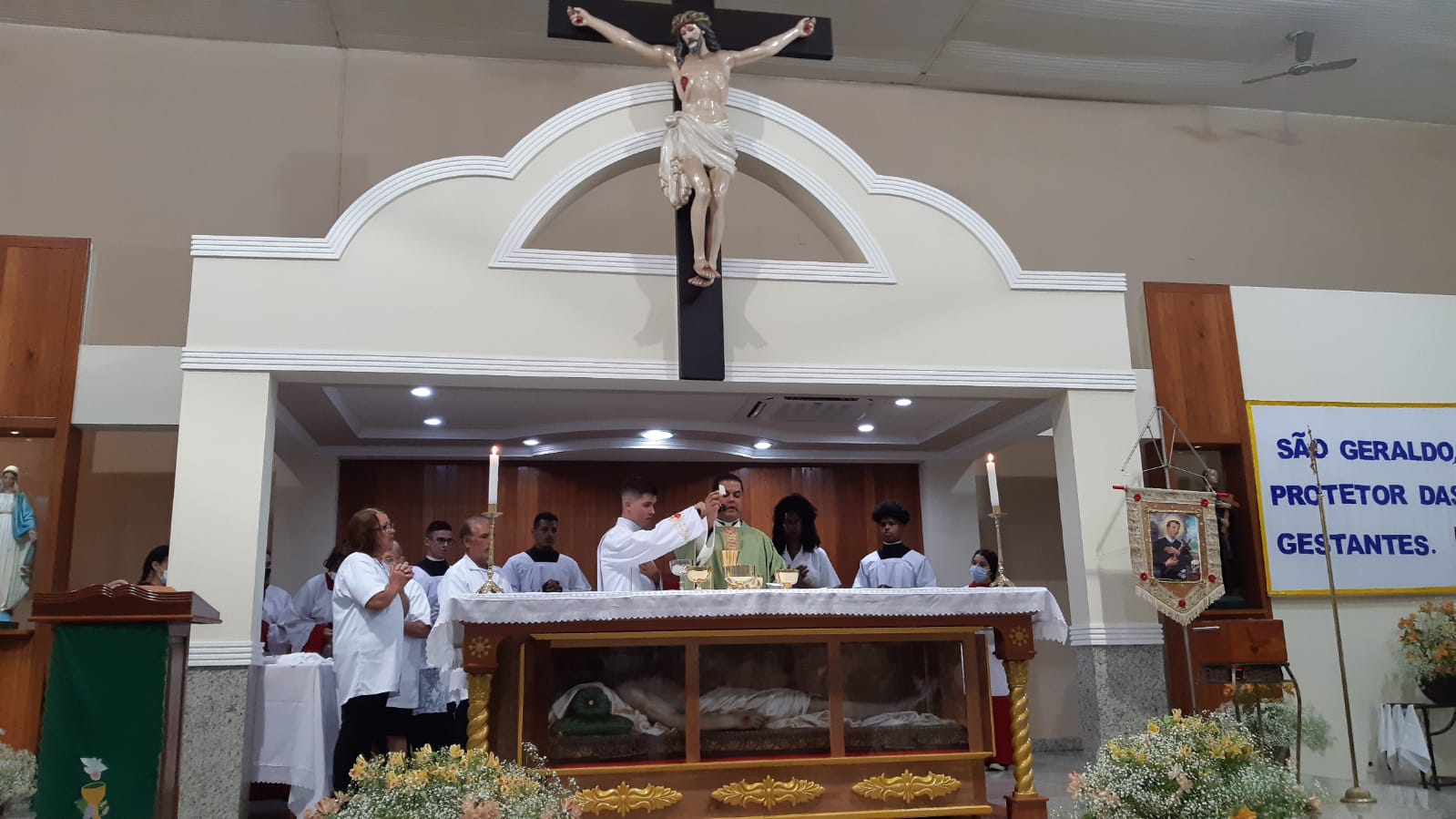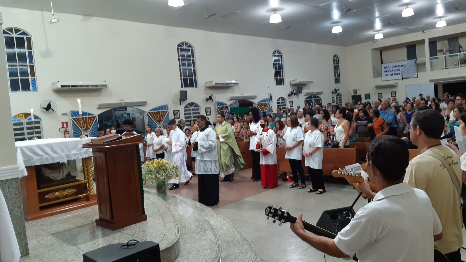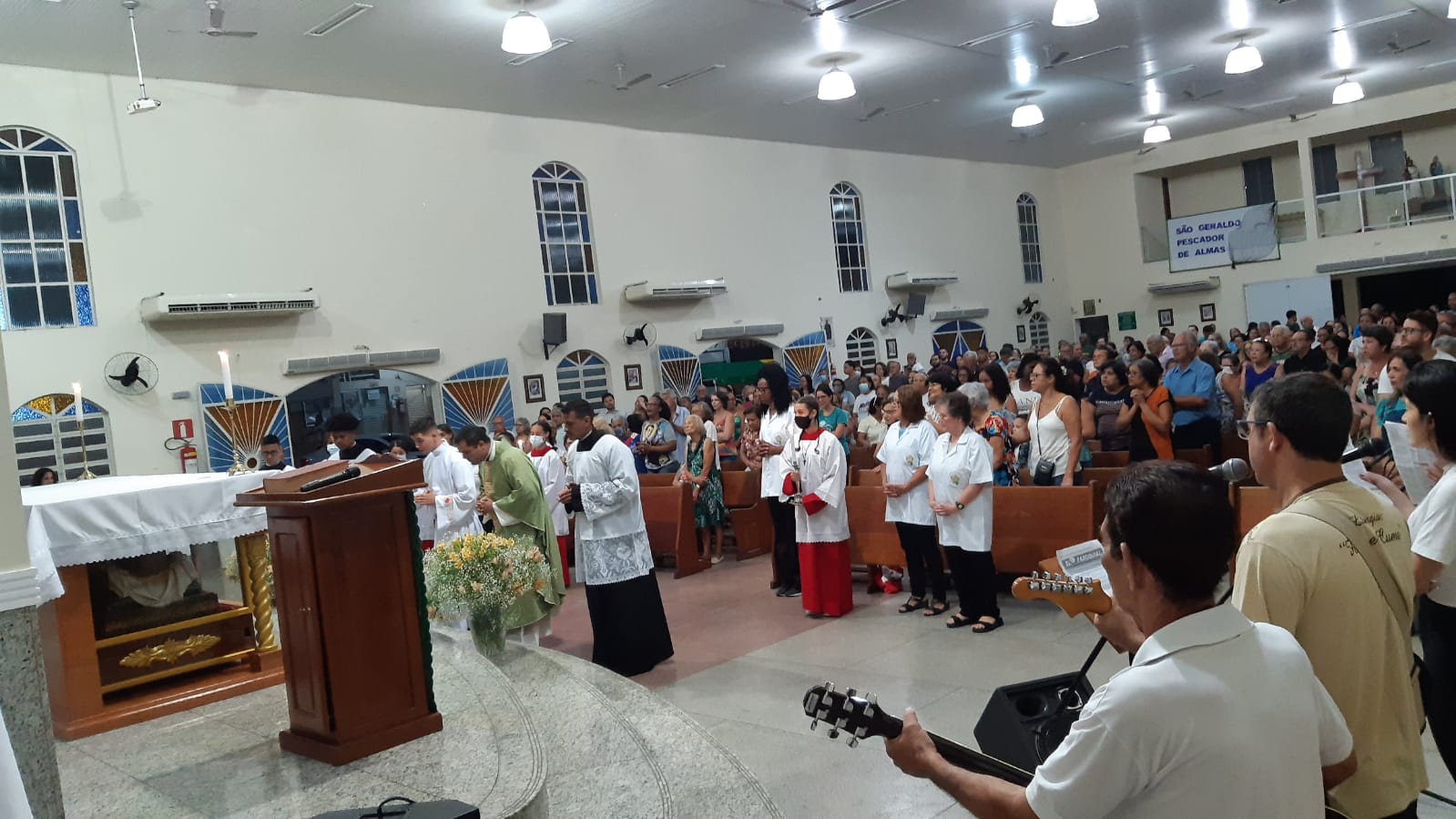 Na última sexta-feira, 14 de outubro, tivemos o 2º Dia do Tríduo em honra ao nosso padroeiro São Geraldo, em nossa Matriz. Neste dia, a programação contou com Missa e exposição do Santíssimo às 7h, na responsabilidade da Comunidade São José, adoração ao Santíssimo das 08h às 19h, Benção do Santíssimo às 19h, seguida de Missa por responsabilidade da Comunidade São Francisco de Assis.