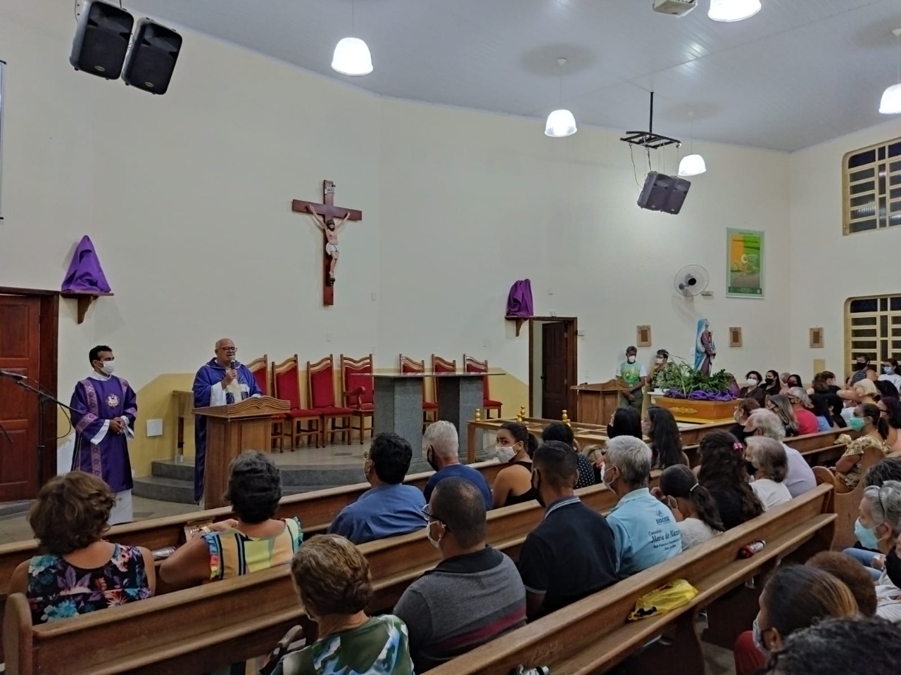 A meditação do Sermão das 7 palavras de Jesus na Cruz feita pelo Pe. Geraldo Morini e que estava acompanhado do Diácono Rogério. Foram utilizadas as belas reflexões de Santo Afonso de Ligório complementadas com os comentários do Pe. Geraldo Morini que foram direcionados à nossa vida de comunidade. O encontro aconteceu na Comunidade Sagrada família que estava cheia, graças à presença de muitos fiéis.