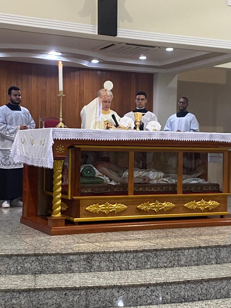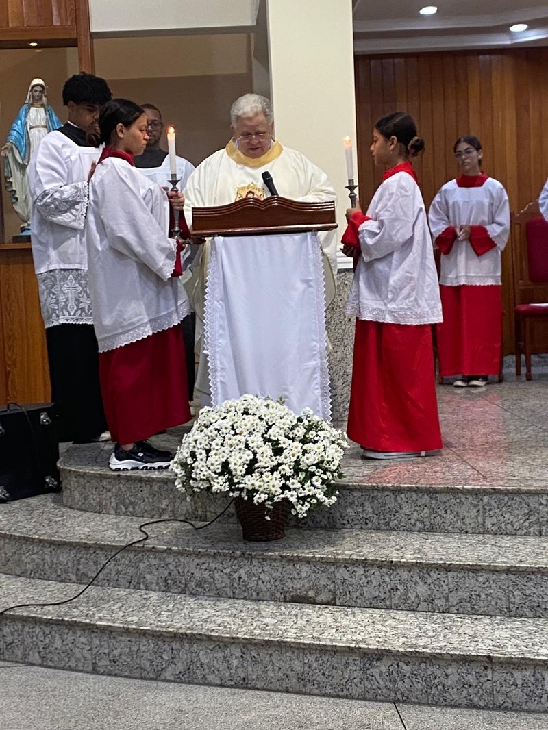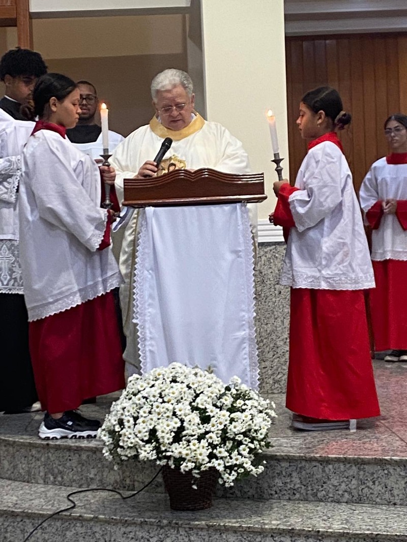 Em sua homilia, o pároco, padre Aloísio Vieira, nos fez refletir sobre a passagem do ano com seus 365 dias. Lembrando que apesar de sabermos que não temos certeza se estaremos vivos no final de 2025 fazemos planos que muitas das vezes não conseguimos realizar, pois existem várias razões pelas quais as pessoas não conseguem realizá-los, levando à frustração. Ele citou um exemplo prático que é preparar um terreno para o plantio: primeiro temos que limpar o terreno (capinar, retirar os galhos) fazer as covas, adubar e colocar a semente e aguardar ela germinar para lá na frente colher. Tudo no seu tempo.