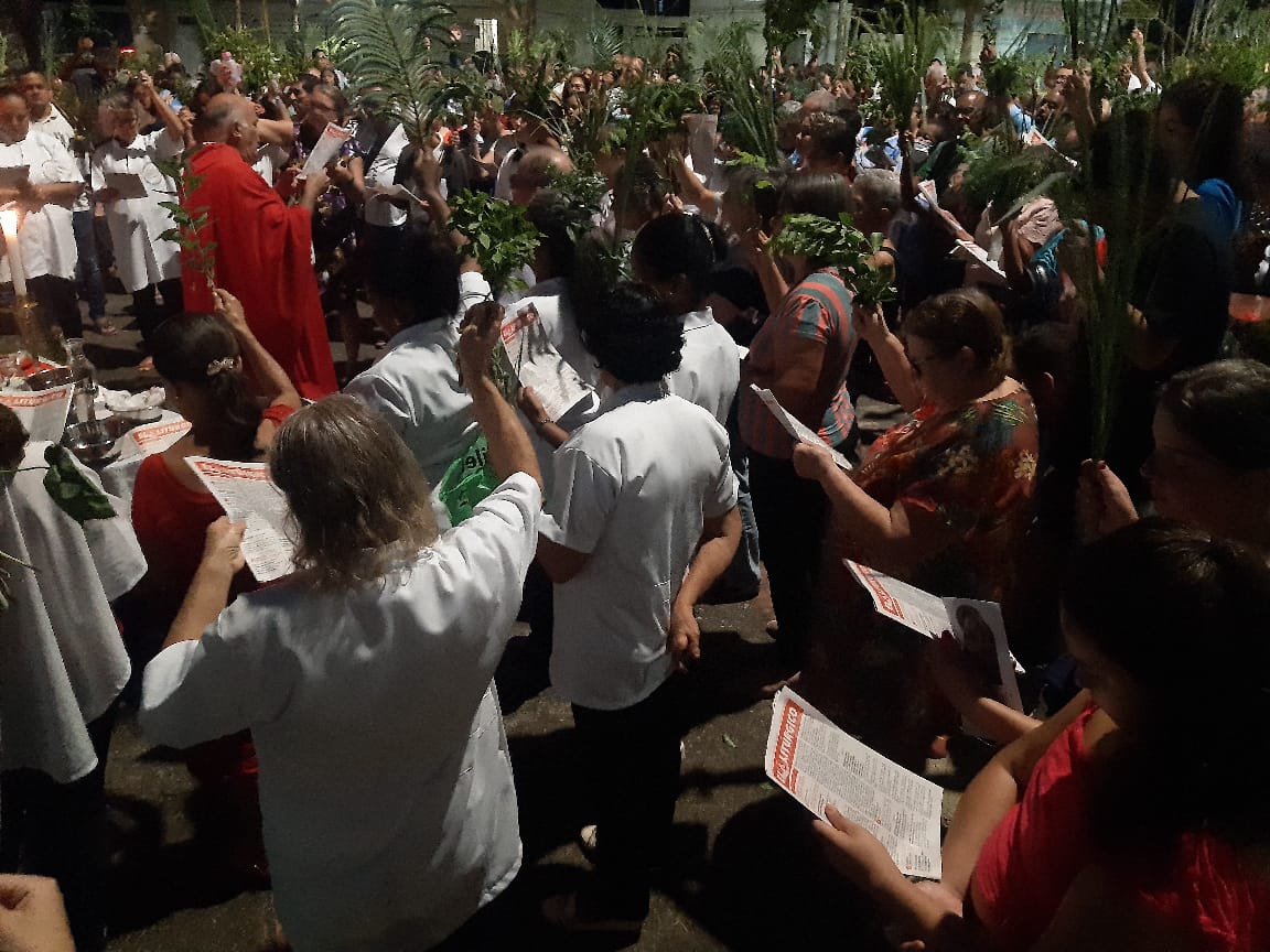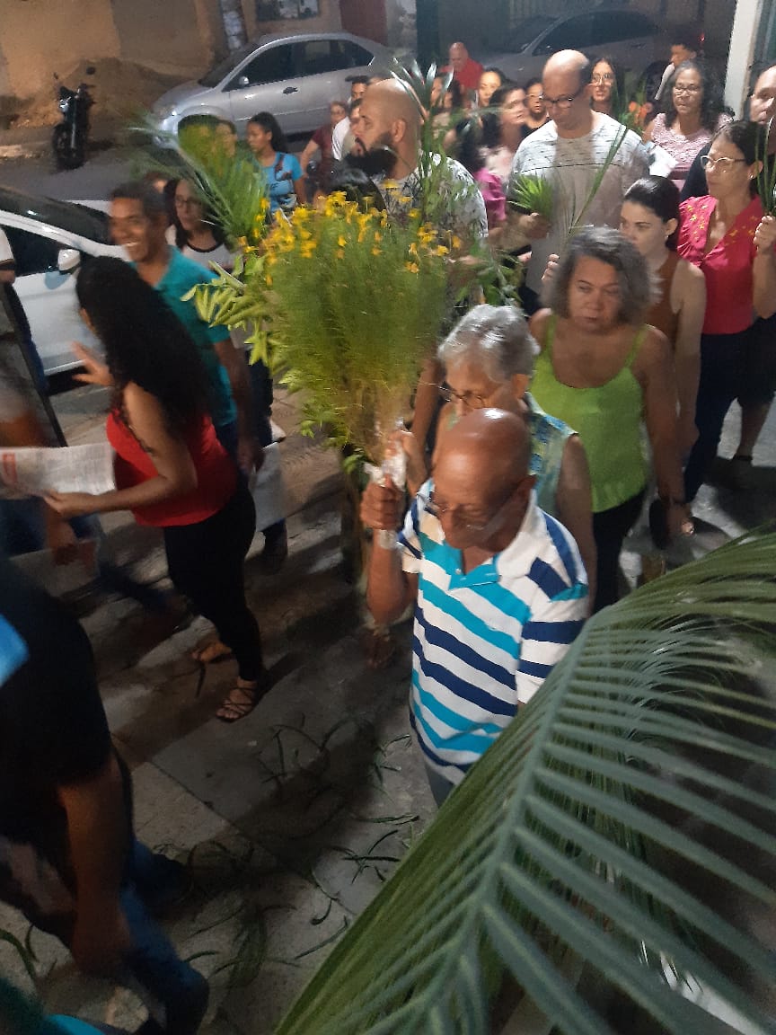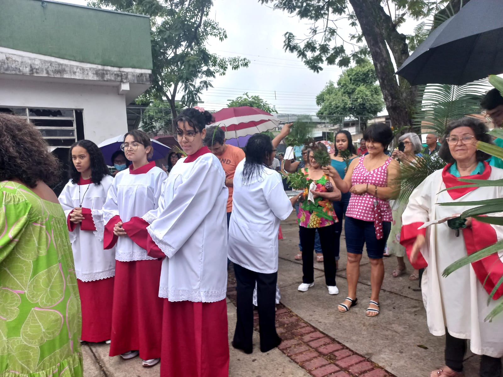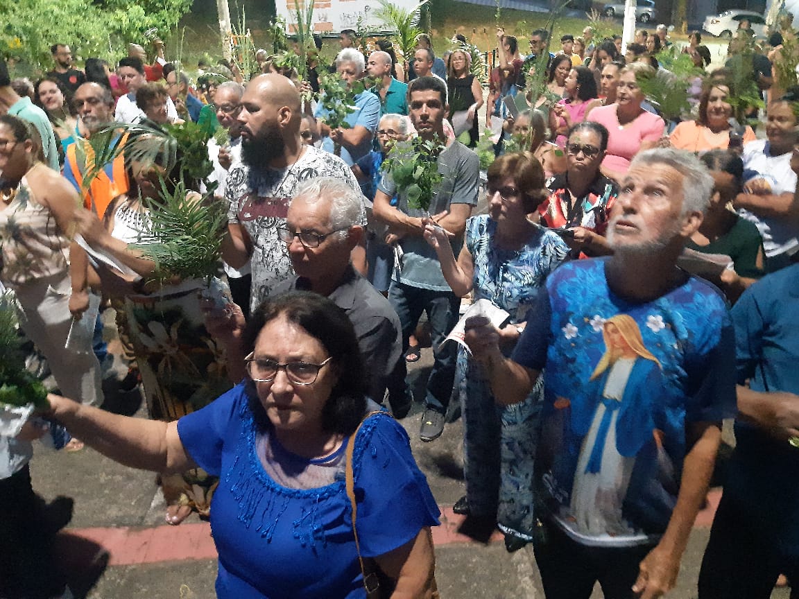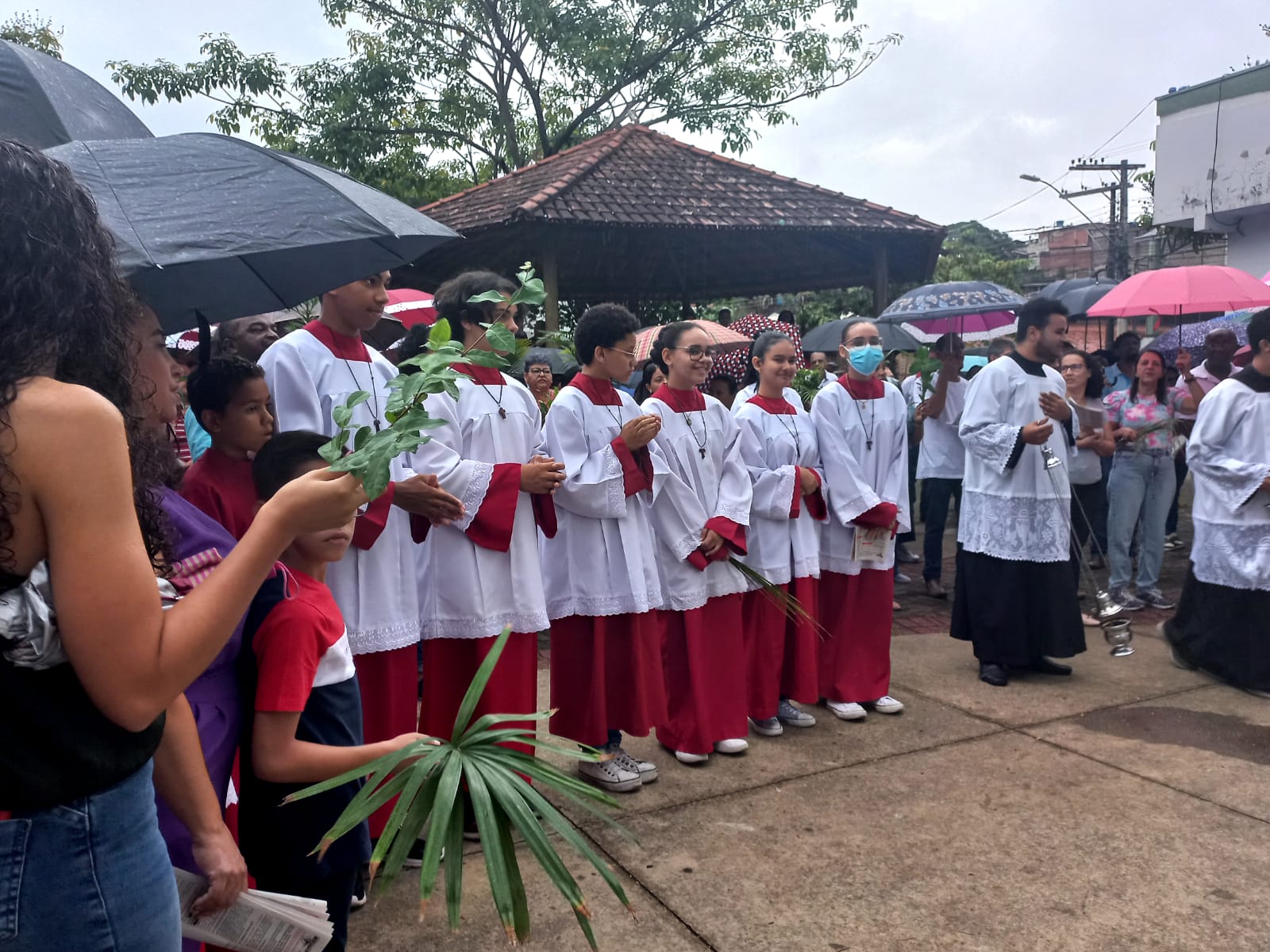 Mesmo com uma chuvinha branda no Bom Jardim, os presentes participaram da primeira parte celebrativa. Após a leitura do Evangelho e benção dos Ramos, os Fiéis seguiram em procissão para Matriz São Geraldo e Nossa Senhora das Graças. O Domingo de Ramos é a abertura da Semana Santa (Semana Maior) na Igreja Católica.