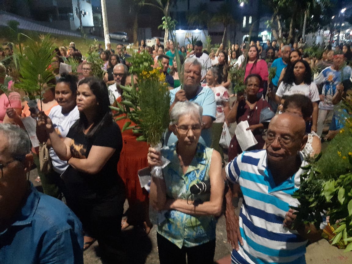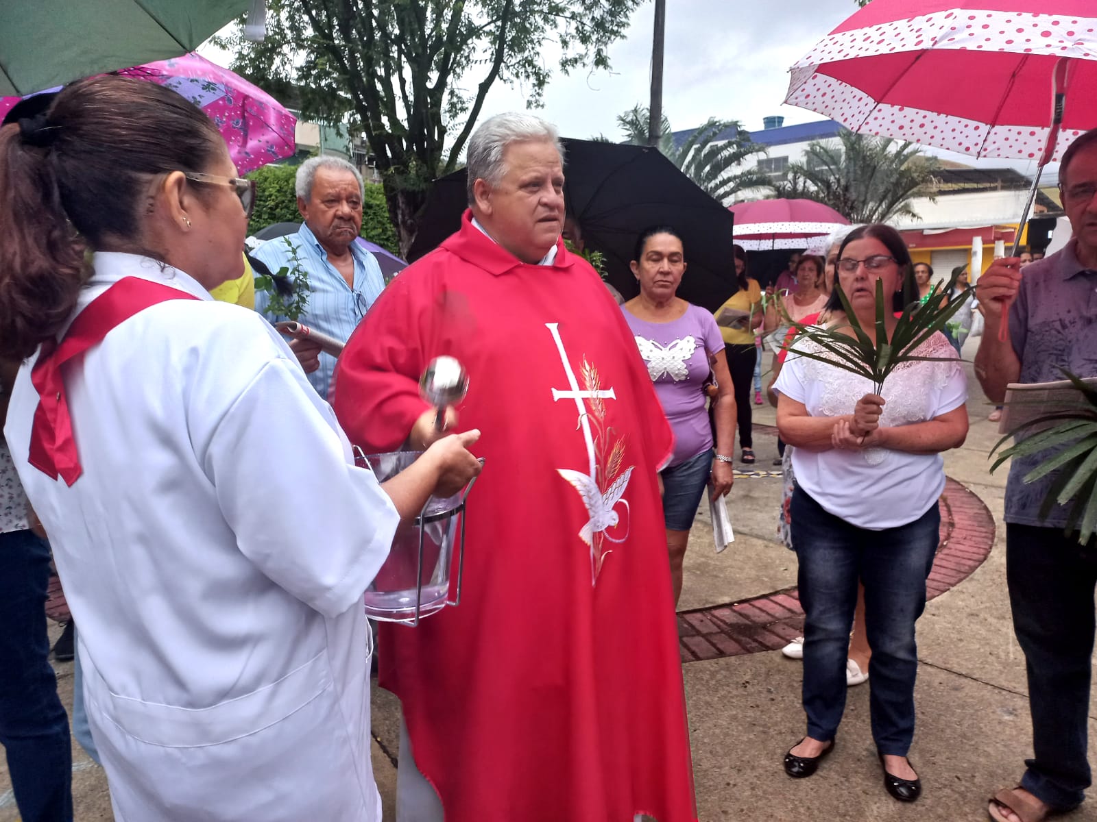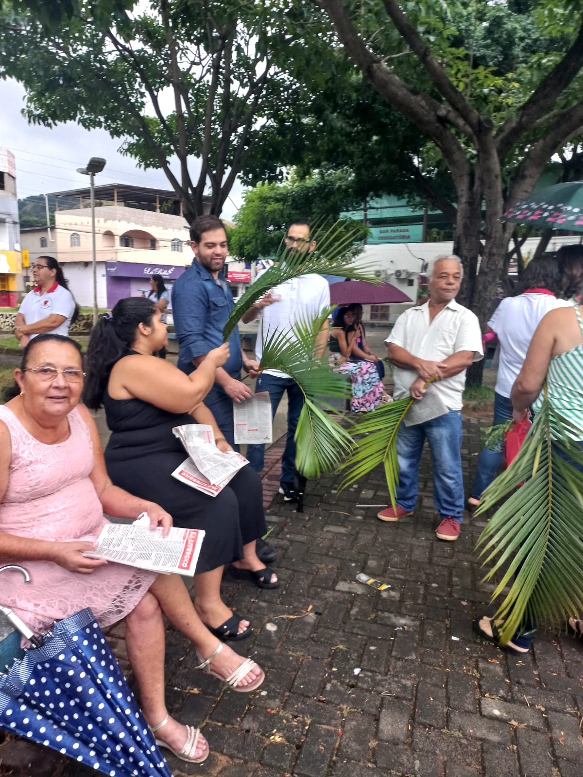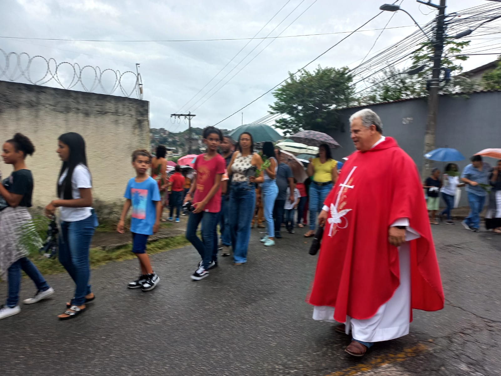 Mesmo com uma chuvinha branda no Bom Jardim, os presentes participaram da primeira parte celebrativa. Após a leitura do Evangelho e benção dos Ramos, os Fiéis seguiram em procissão para Matriz São Geraldo e Nossa Senhora das Graças. O Domingo de Ramos é a abertura da Semana Santa (Semana Maior) na Igreja Católica.