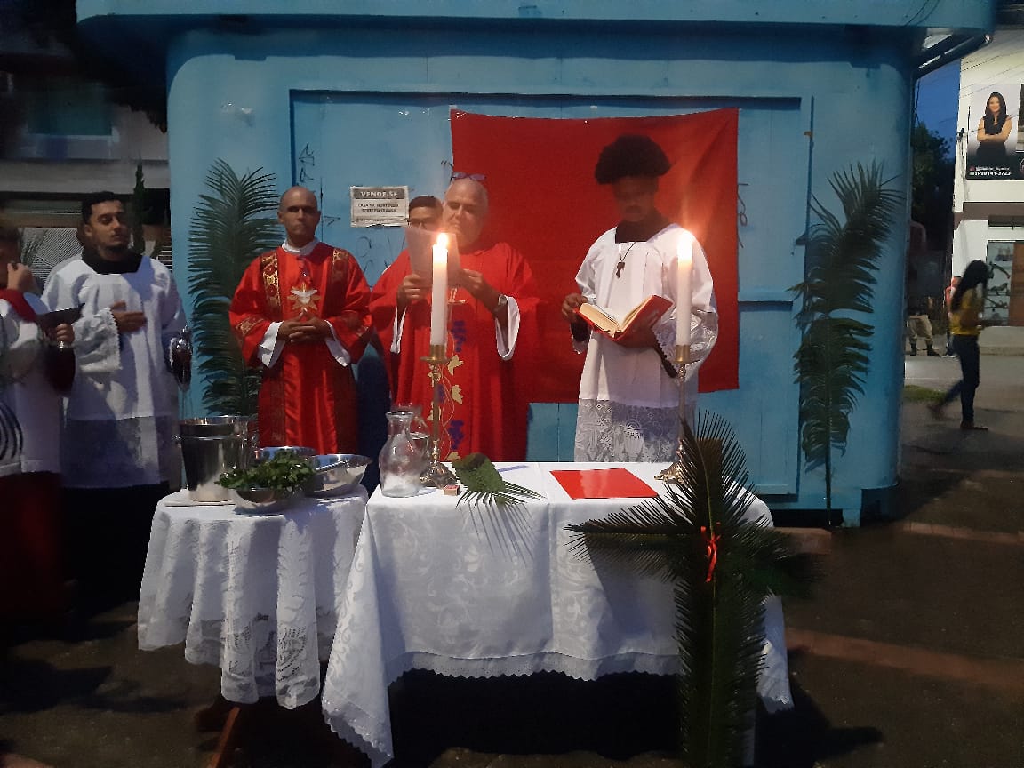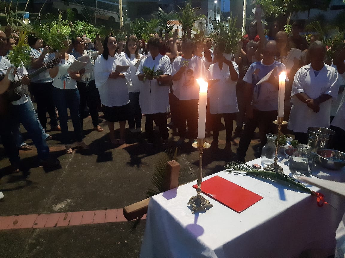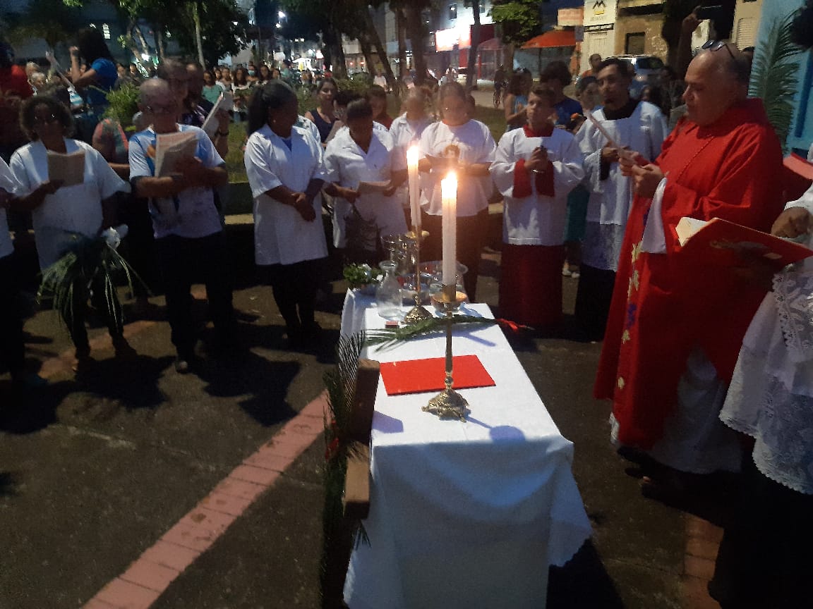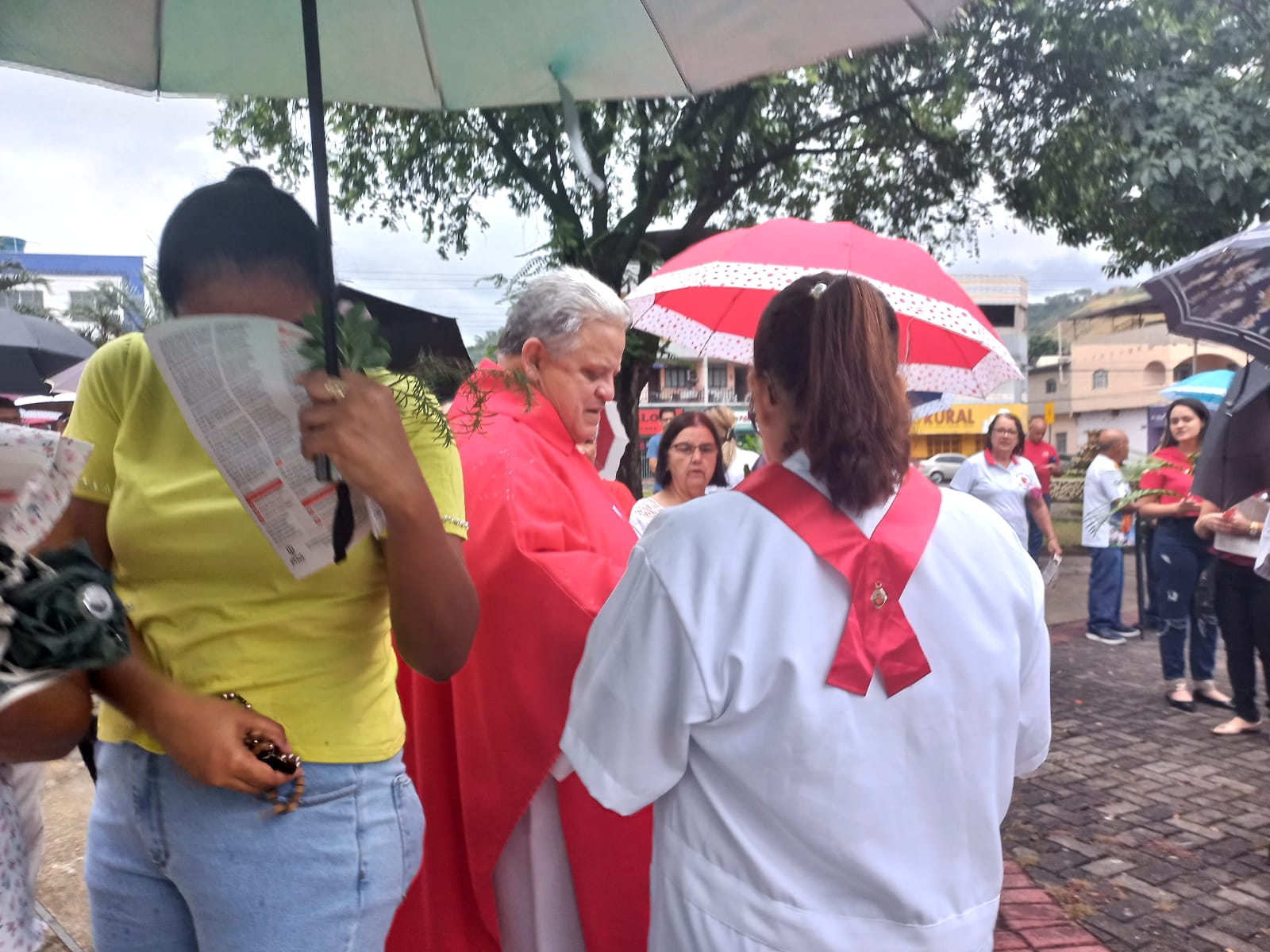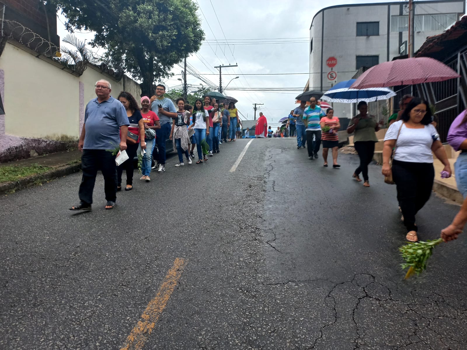 Mesmo com uma chuvinha branda no Bom Jardim, os presentes participaram da primeira parte celebrativa. Após a leitura do Evangelho e benção dos Ramos, os Fiéis seguiram em procissão para Matriz São Geraldo e Nossa Senhora das Graças. O Domingo de Ramos é a abertura da Semana Santa (Semana Maior) na Igreja Católica.