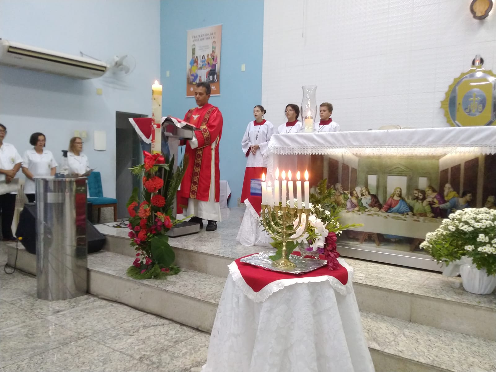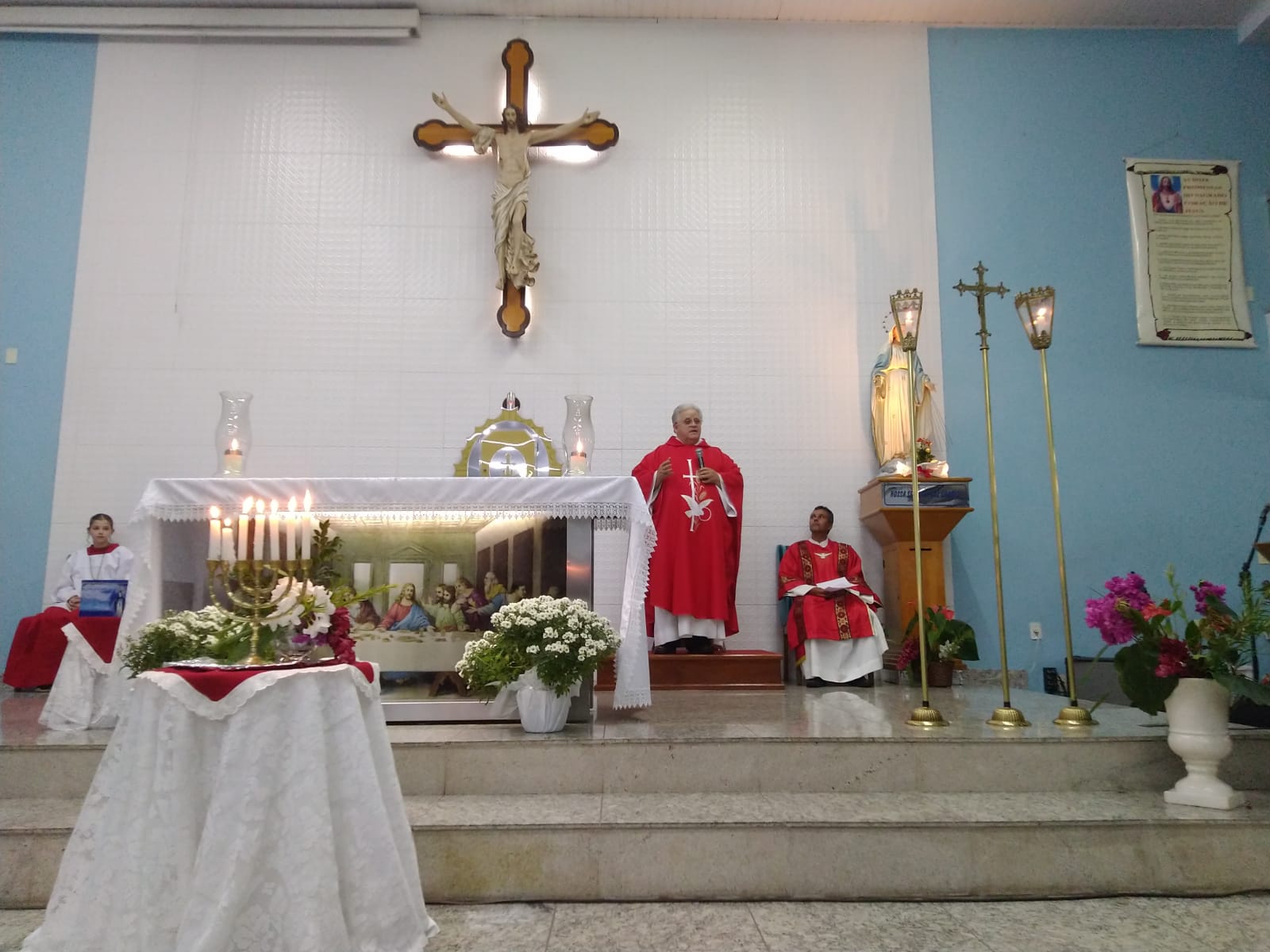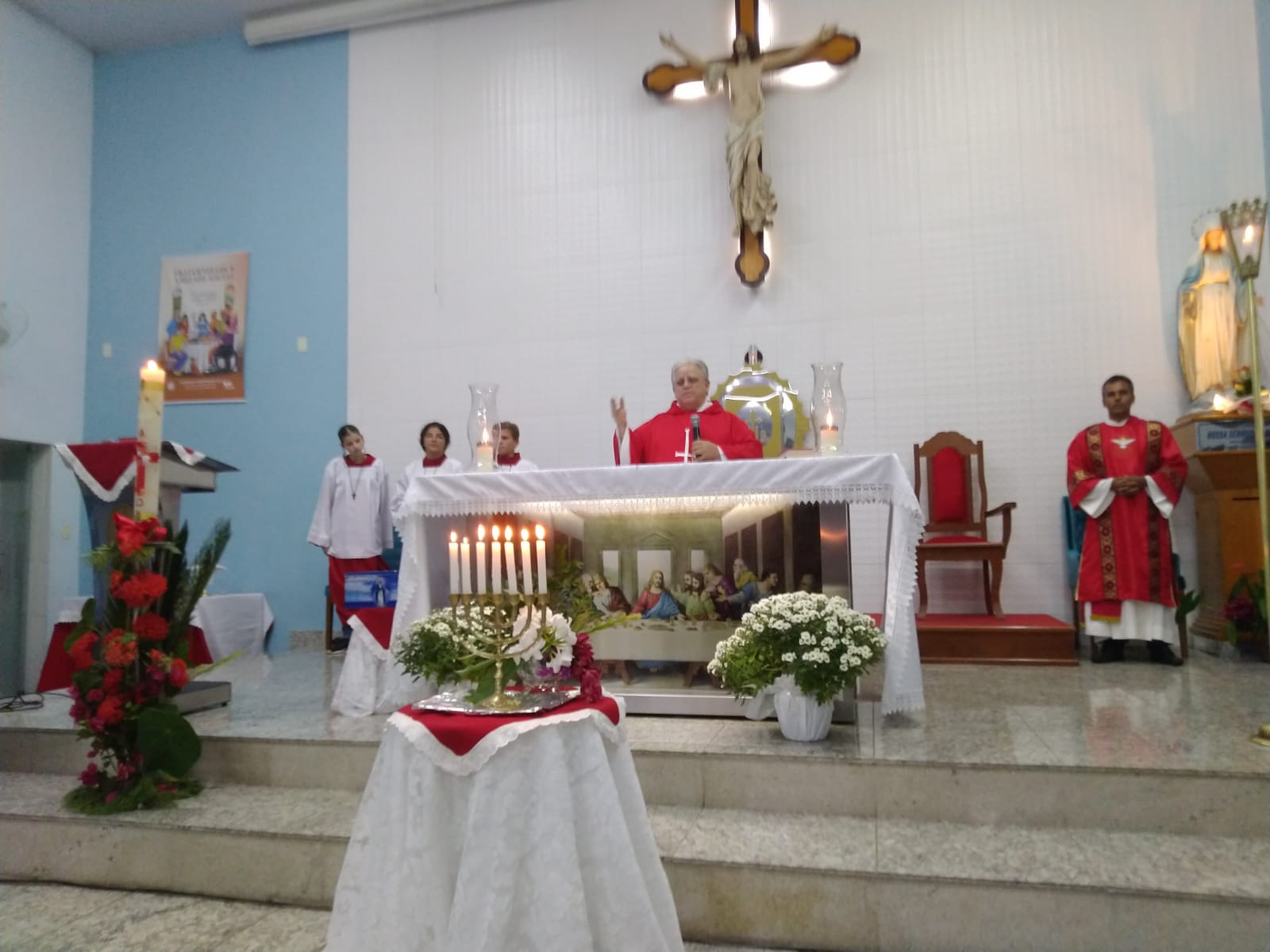 Aconteceu no domingo (19/05) na Comunidade Nossa Senhora das Graças- Paroquia São Geraldo Magela em Ipatinga (MG), a missa solene de Pentecostes. Presidida pelo pároco padre Aloísio Vieira, com assistência do diácono Márcio Rogério.