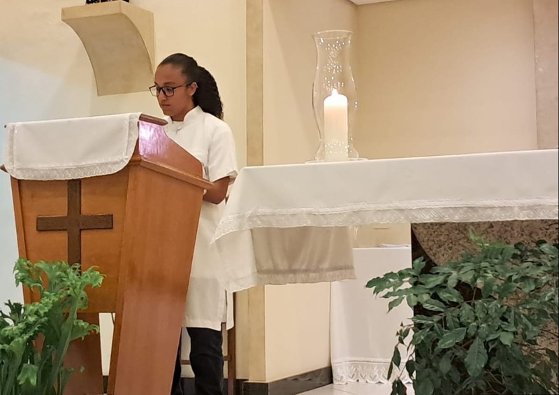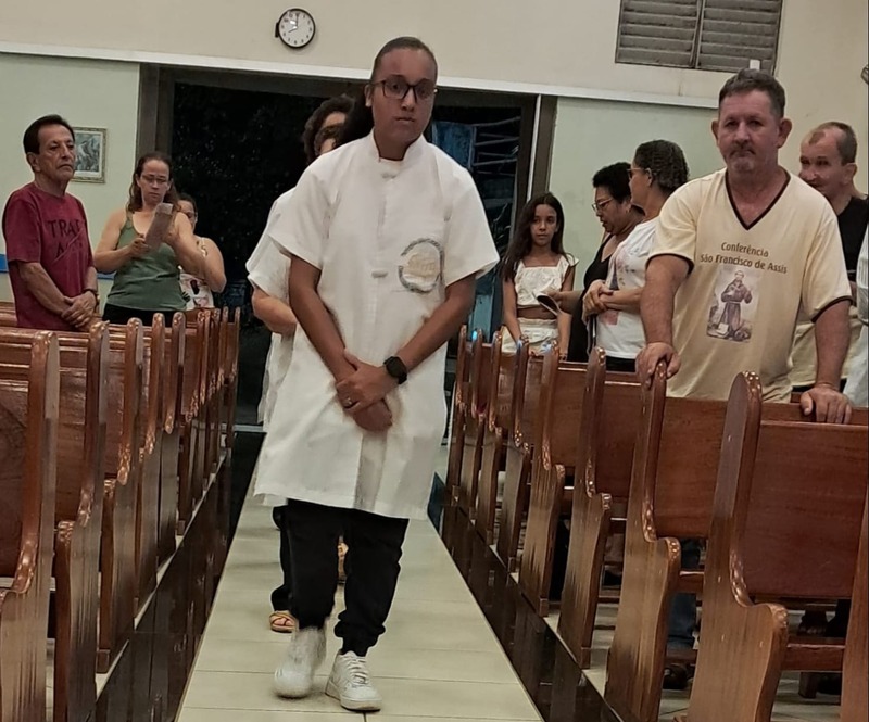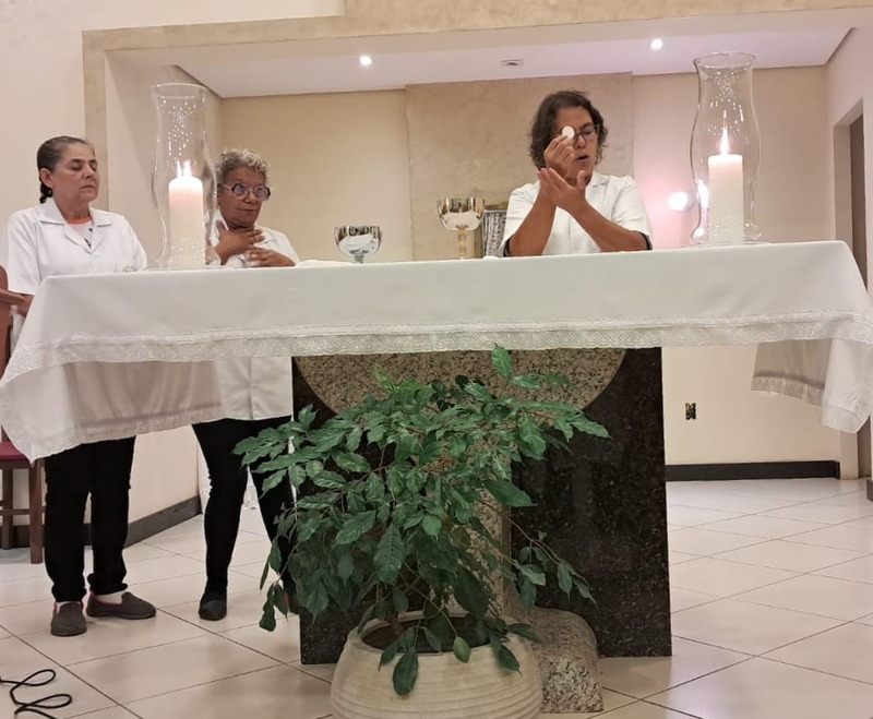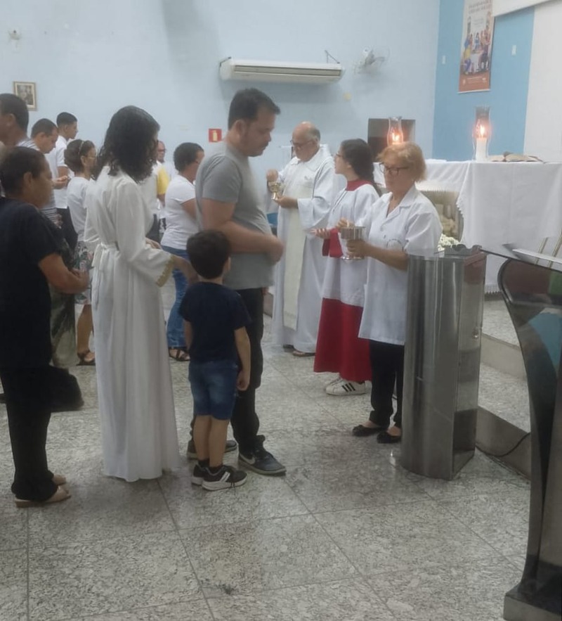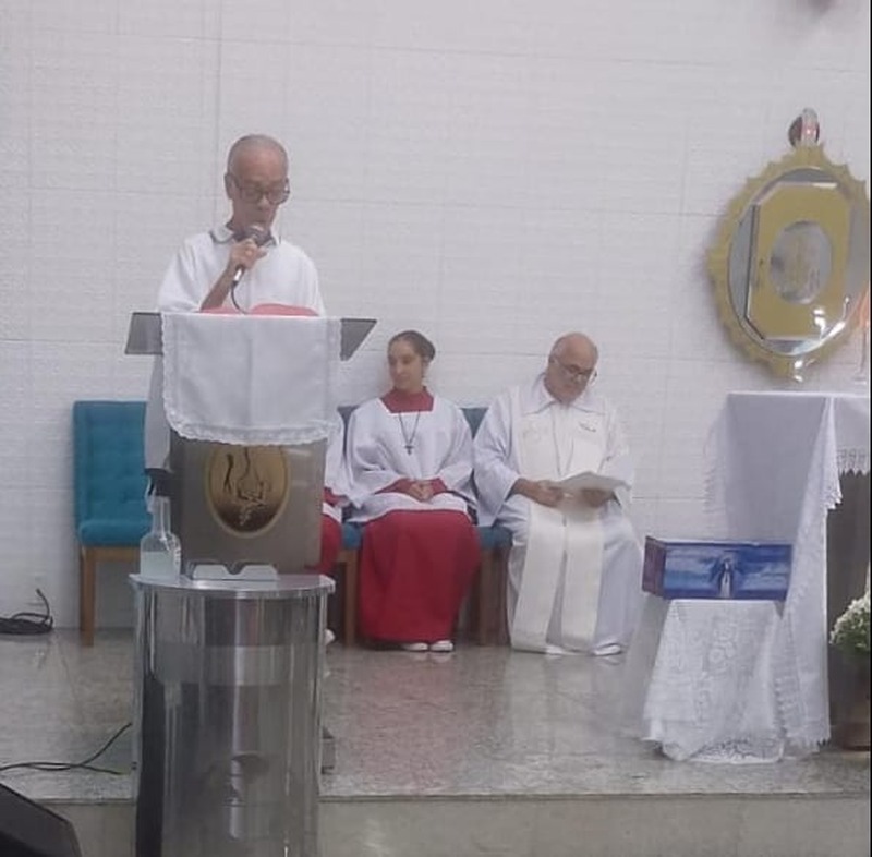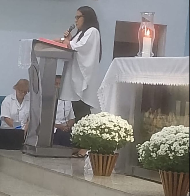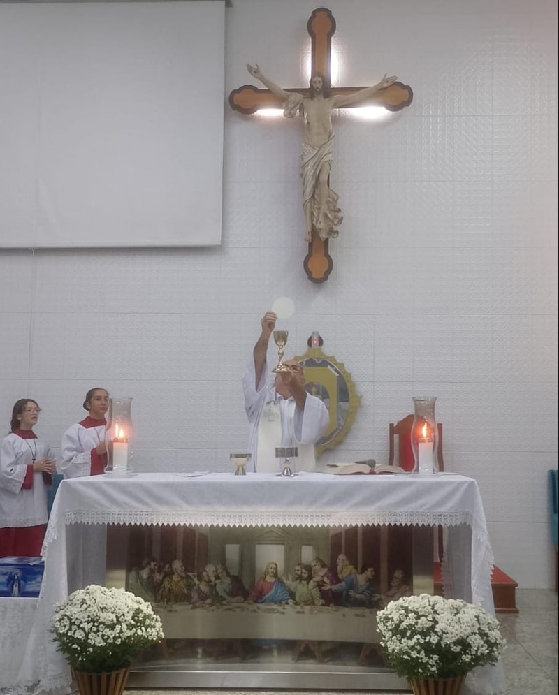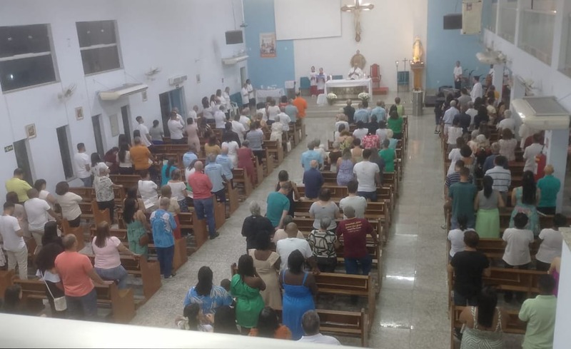 A Santa Missa presidida pelo Padre Geraldo Morini de Almeida na comunidade Nossa Senhora das Graças e na comunidade São Francisco de Assis a celebração da Palavra com a Ministra Leiga Sebastiana de Souza (Taninha).