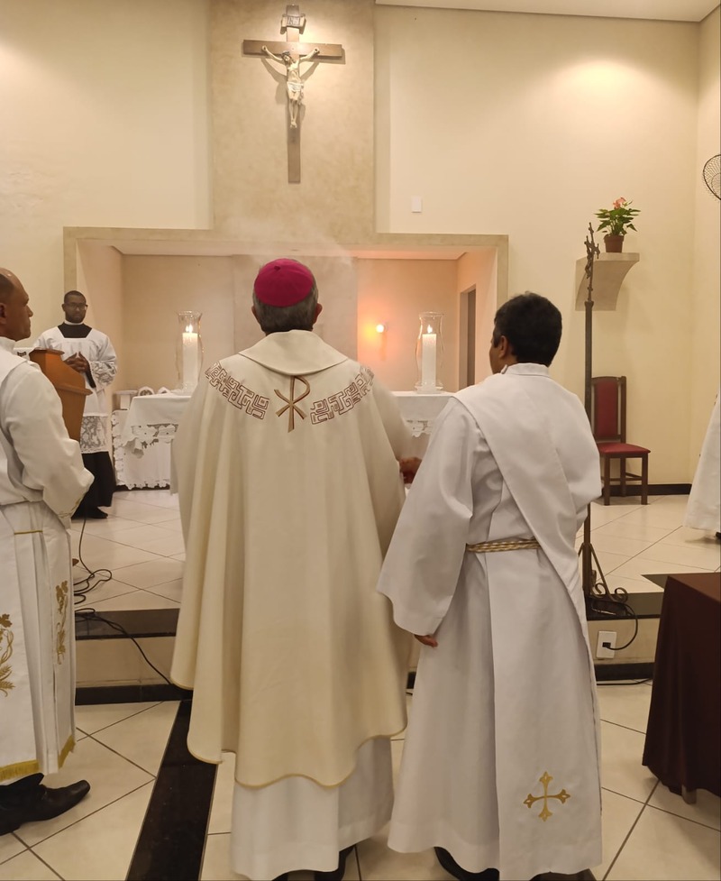 A presença do Bispo Diocesano presidindo a Santa Missa, fez parte da Visita Pastoral à Paróquia São Geraldo Magela que aconteceu do dia 2 a 5 de outubro. A Missa foi concelebrada pelo Pároco da Paróquia São Geraldo Magela, Padre Aloísio Vieira e auxiliada pelos Diáconos Márcio Rogério Vieira Honorato e Henrique Armstrong Carvalho Rodrigues.