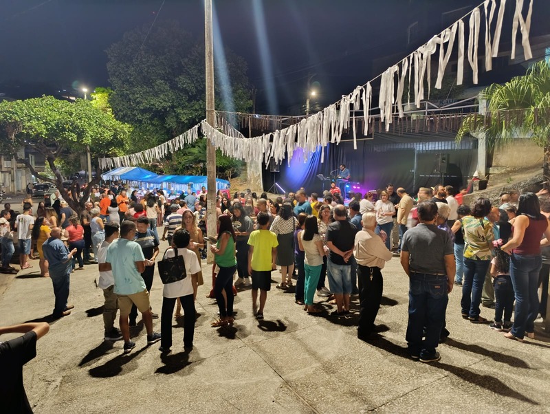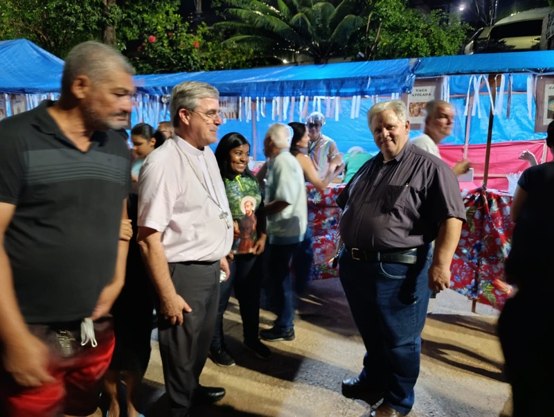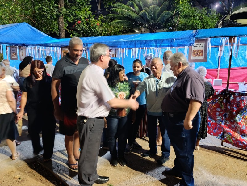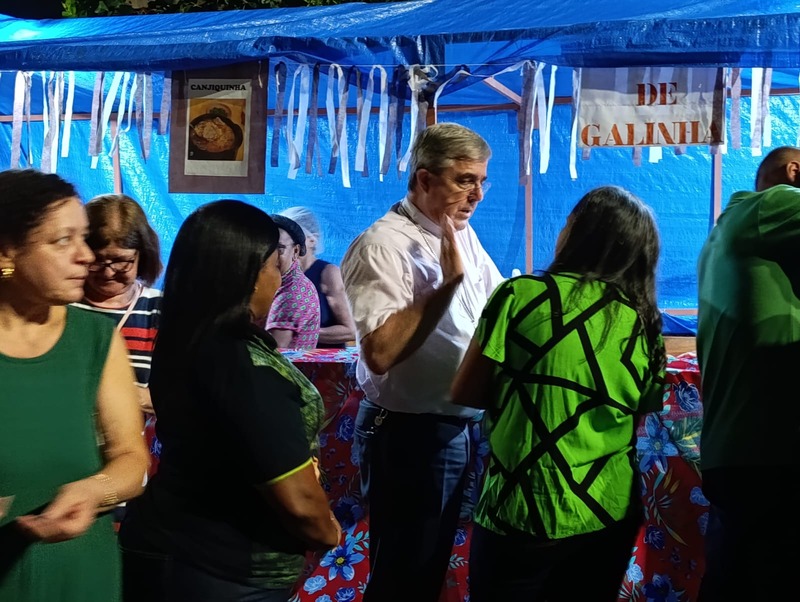 Após a Benção Final, a festa da Comunidade continuou do lado de fora. O Bispo Dom Marco Aurélio marcou presença nas barraquinhas que tinham várias comidas típicas. O Bispo também interagiu com os paroquianos e prestigiou a festa, e também saboreou os cardápios da culinária mineira que é incomparável.
