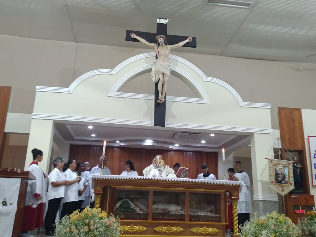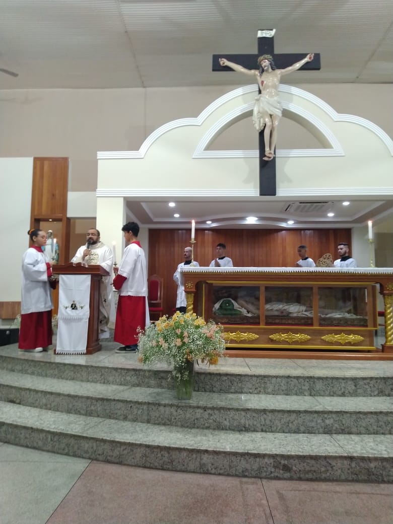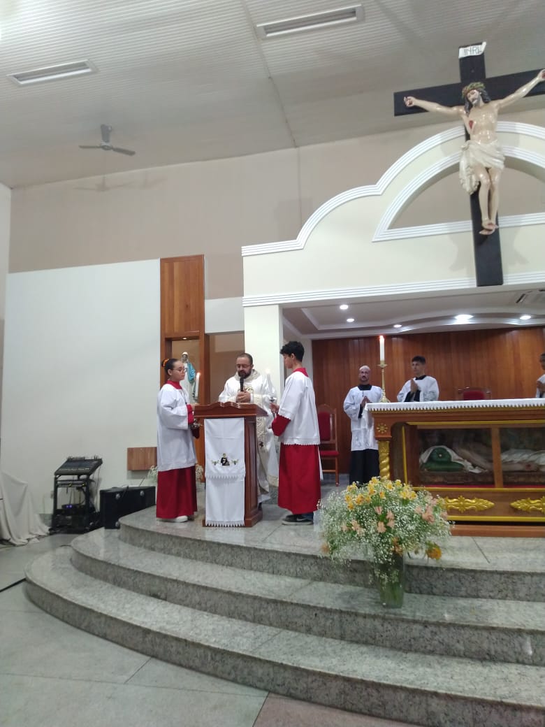 No último sábado, 15 de outubro, tivemos o 2º Dia do Tríduo em honra ao nosso padroeiro São Geraldo, em nossa Matriz. Neste dia, a programação contou com Missa e exposição do Santíssimo às 7h, na responsabilidade da Comunidade São João Batista, adoração ao Santíssimo das 08h às 19h, Benção do Santíssimo às 19h, seguida de Missa por responsabilidade da Comunidade Sagrada Família. Na ocasião, celebrou-se em intenção do Dia Nacional da Juventude, que este ano trouxe como tema “E o Verbo se fez carne”.