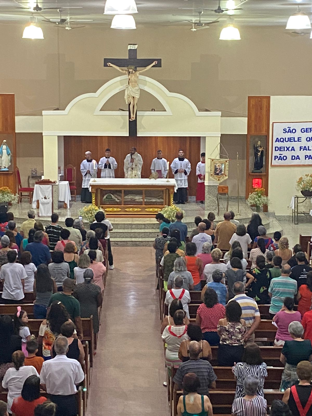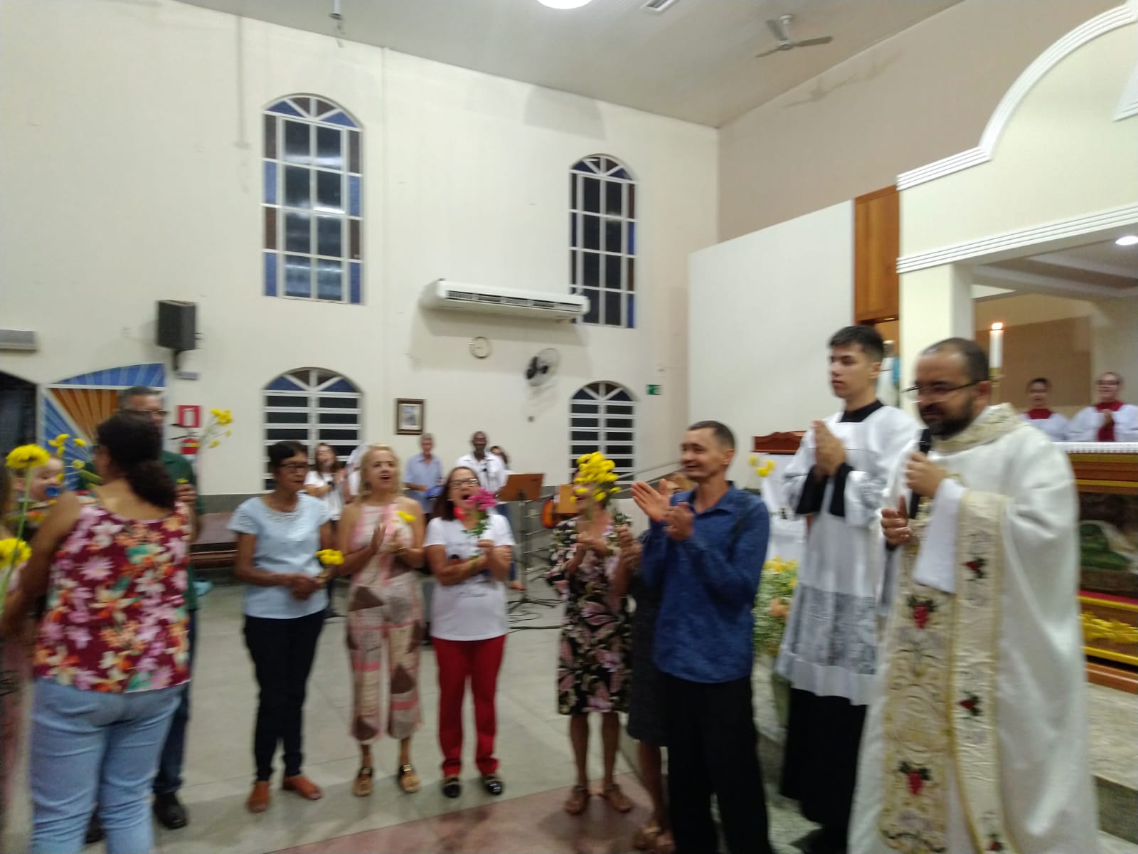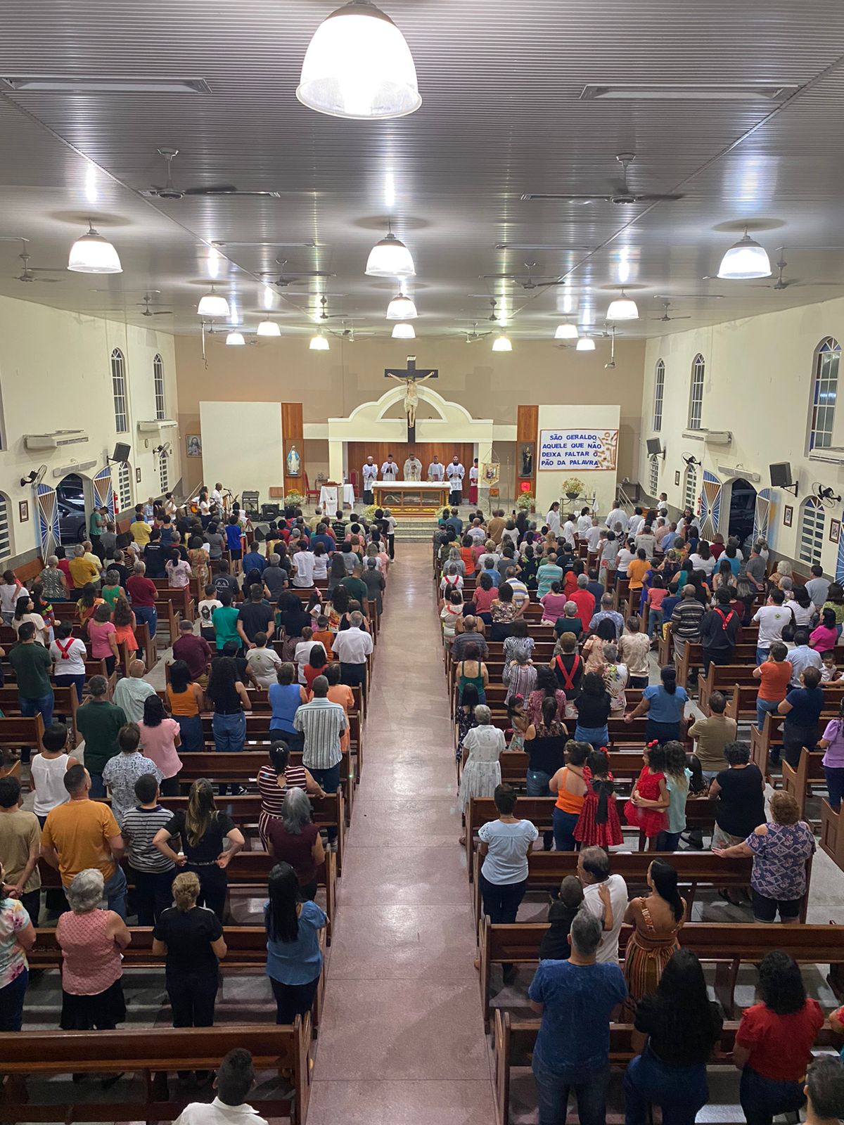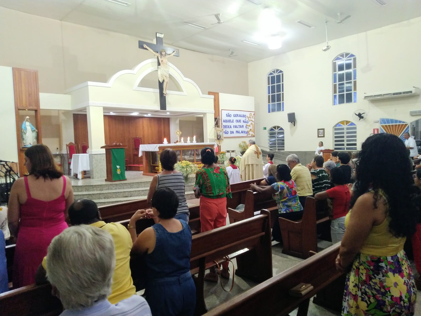 Presidida pelo Pe. José Cláudio de Oliveira, filho da Paróquia São Geraldo Magela, a celebração eucarística da noite teve o oferecimento de flores dos vovôs, vovós, Geraldos, Geraldas, Geraldinos, Geraldinas. Todos os que têm Geraldo(a) no nome.