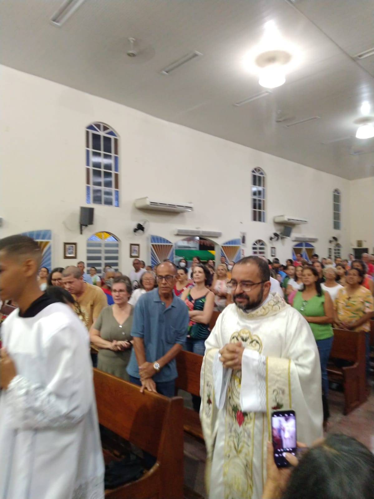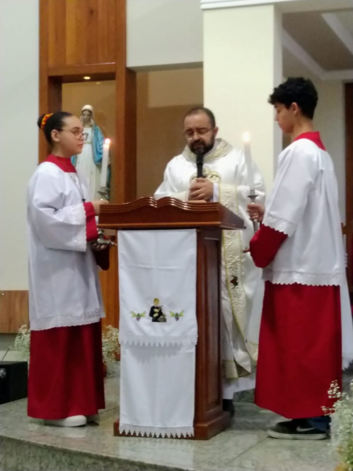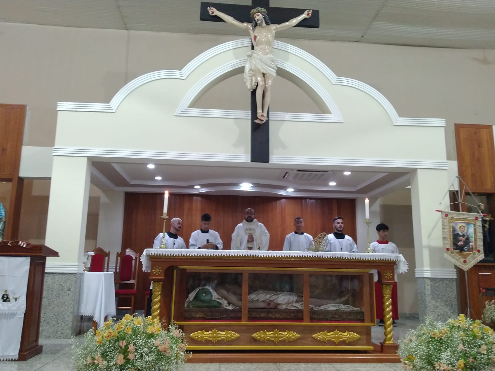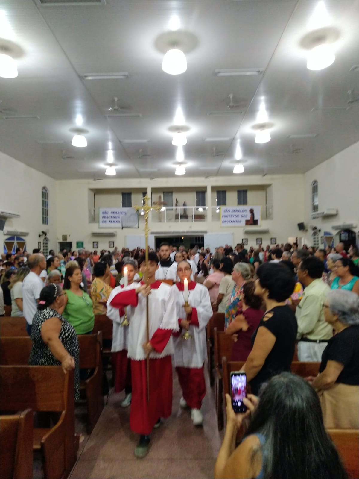 Presidida pelo Pe. José Cláudio de Oliveira, filho da Paróquia São Geraldo Magela, a celebração eucarística da noite teve o oferecimento de flores dos vovôs, vovós, Geraldos, Geraldas, Geraldinos, Geraldinas. Todos os que têm Geraldo(a) no nome.
