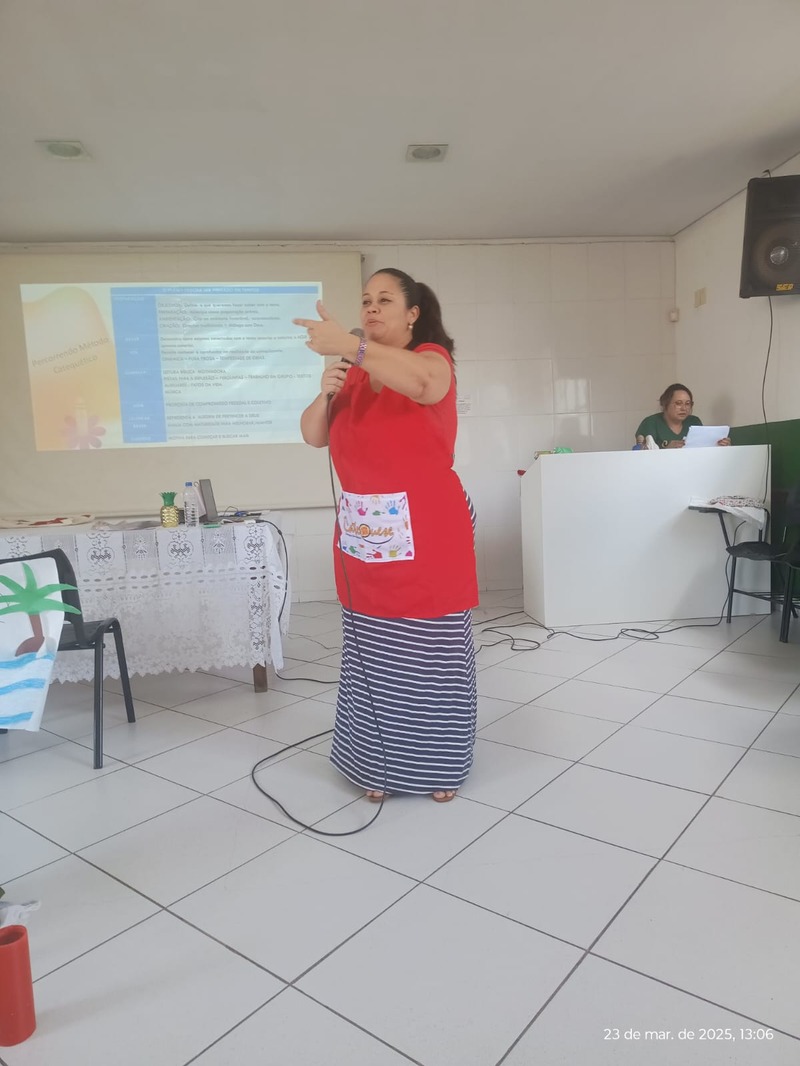 A programação contou com momentos de oração, palestras inspiradoras e dinâmicas interativas, ressaltando a importância de uma catequese viva, envolvente e transformadora. Além disso, os catequistas puderam refletir sobre novas abordagens para transmitir a fé, promovendo um encontro autêntico com Cristo e tornando o anúncio do Evangelho mais próximo da realidade de crianças, jovens e adultos.