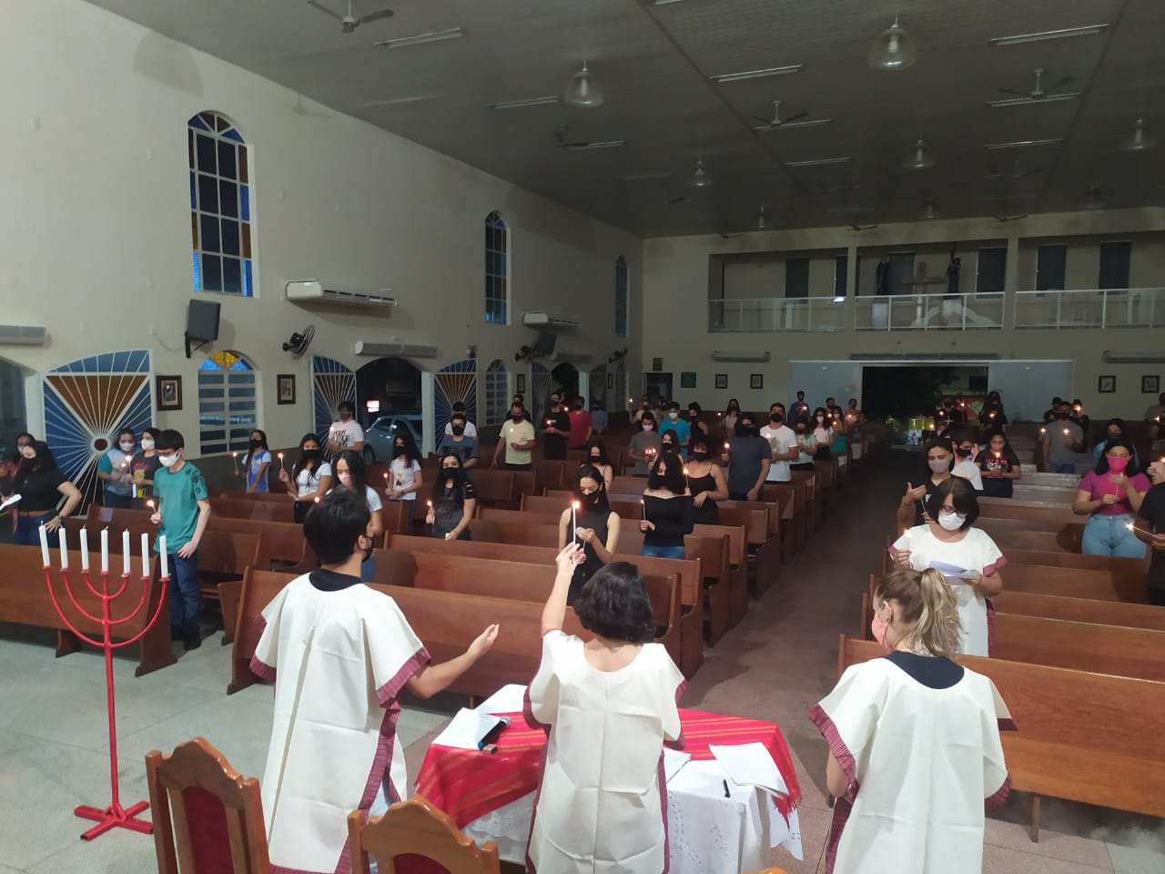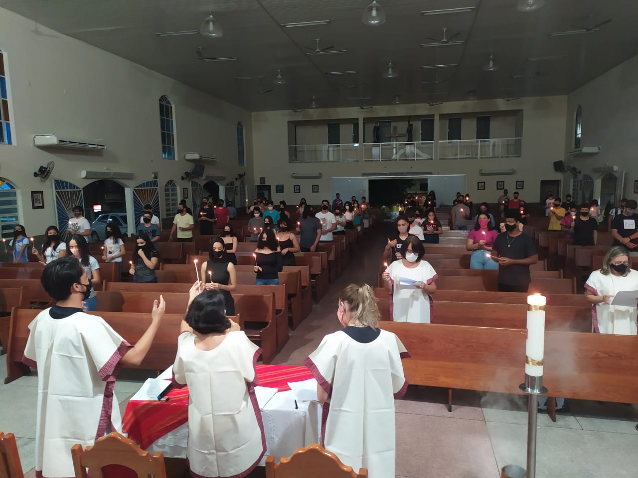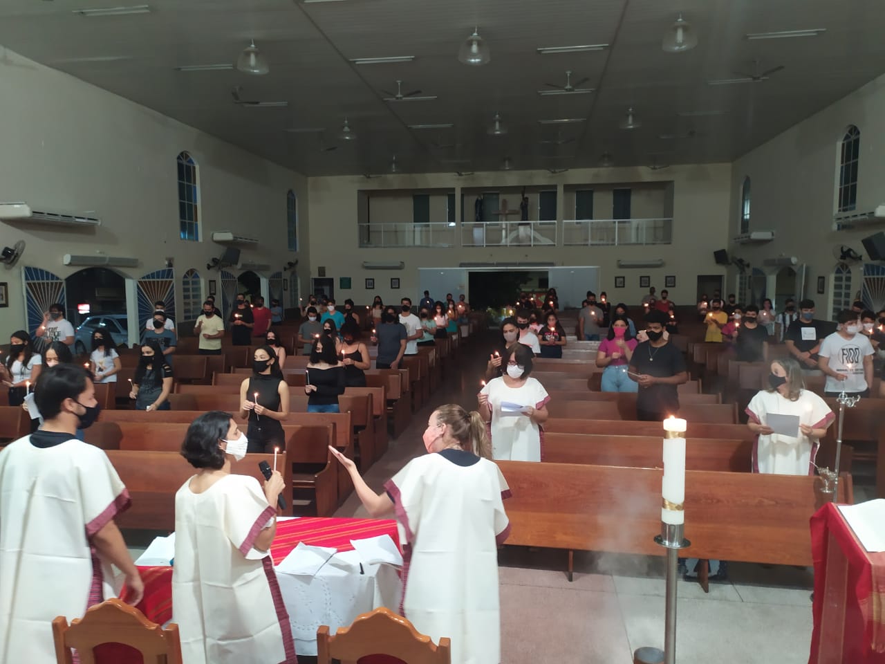 Ao anoitecer do dia 22 de maio de 2021, véspera do domingo que celebra a solenidade de Pentecostes, foi realizada na Igreja Matriz São Geraldo Magela em Ipatinga (MG) a Vigília de Pentecostes com os jovens que irão receber o sacramento da crisma no dia 06 de junho. Foi um momento celebrativo e orante com a participação intensa destes jovens. A liturgia cristã é muito sábia dividindo o ano com festas que indicam os marcos mais importantes da fé cristã: a encarnação, ressurreição e agora Pentecostes, que são como “toques” para despertar essa atenção.
