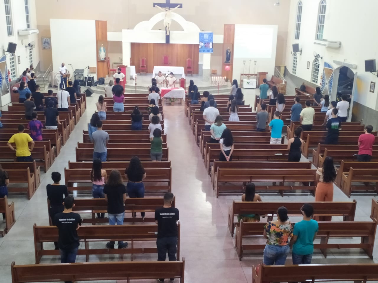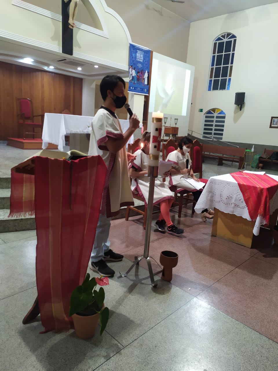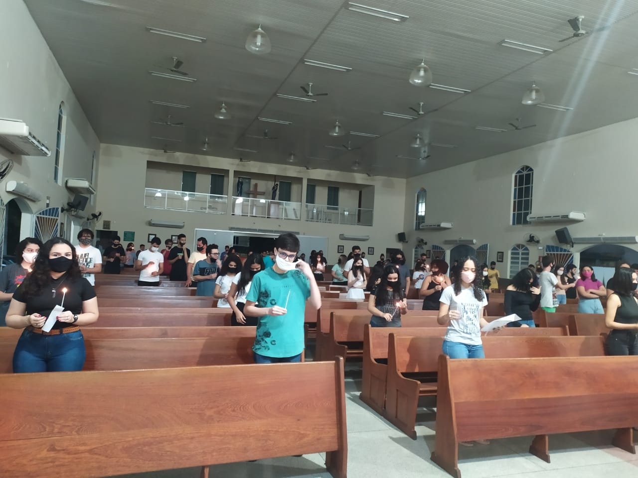 Ao anoitecer do dia 22 de maio de 2021, véspera do domingo que celebra a solenidade de Pentecostes, foi realizada na Igreja Matriz São Geraldo Magela em Ipatinga (MG) a Vigília de Pentecostes com os jovens que irão receber o sacramento da crisma no dia 06 de junho. Foi um momento celebrativo e orante com a participação intensa destes jovens. A liturgia cristã é muito sábia dividindo o ano com festas que indicam os marcos mais importantes da fé cristã: a encarnação, ressurreição e agora Pentecostes, que são como “toques” para despertar essa atenção.