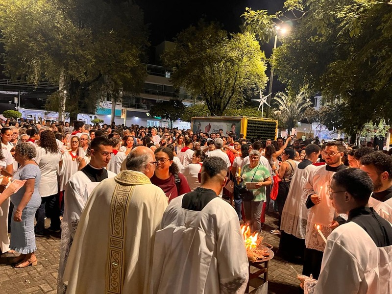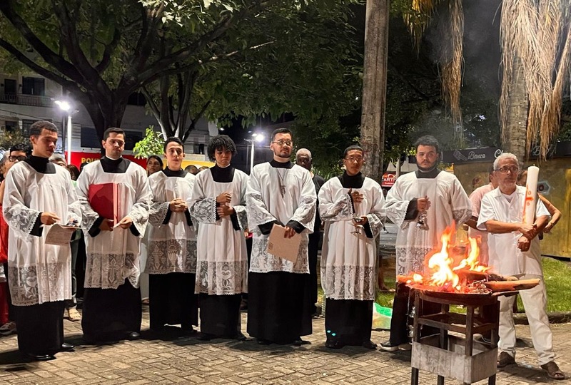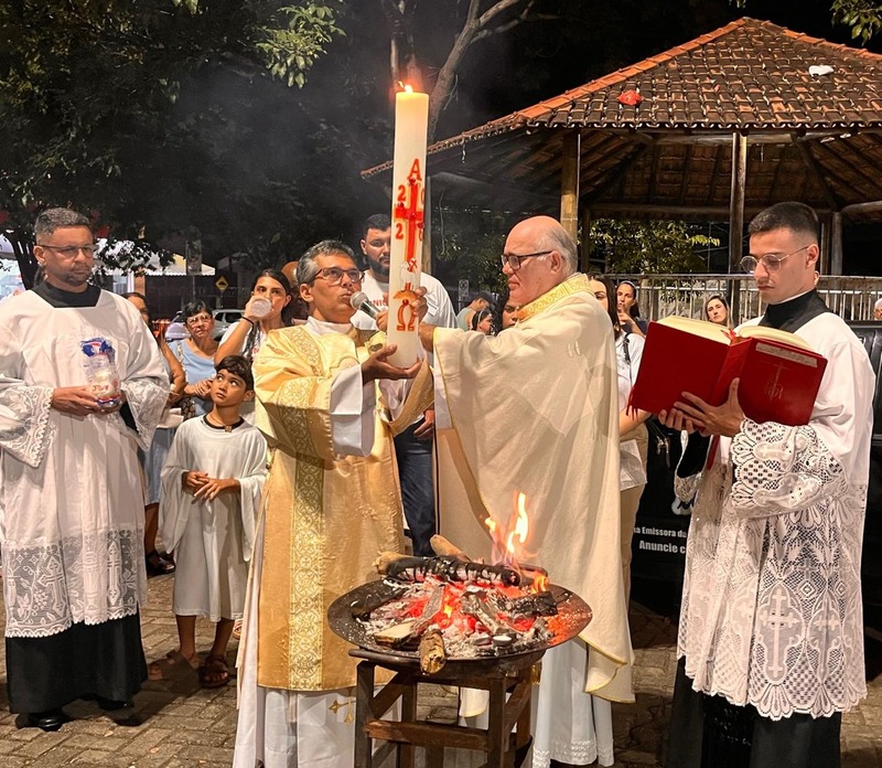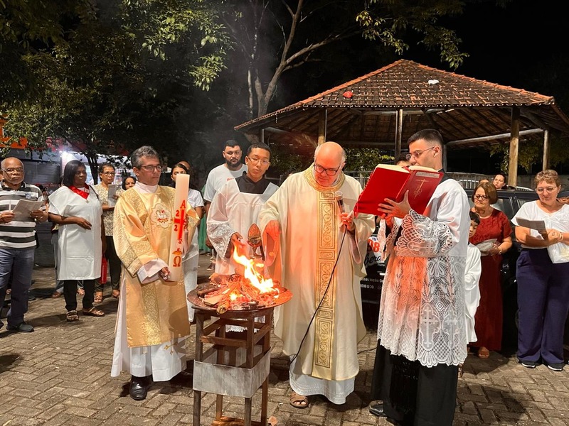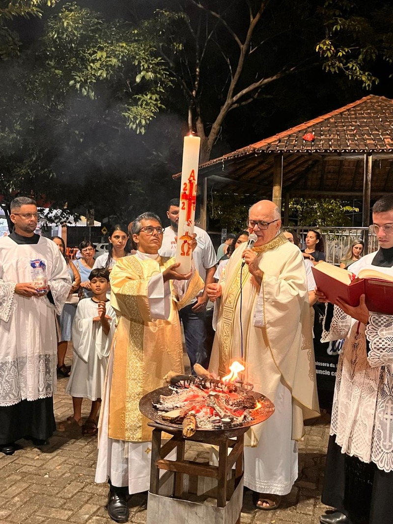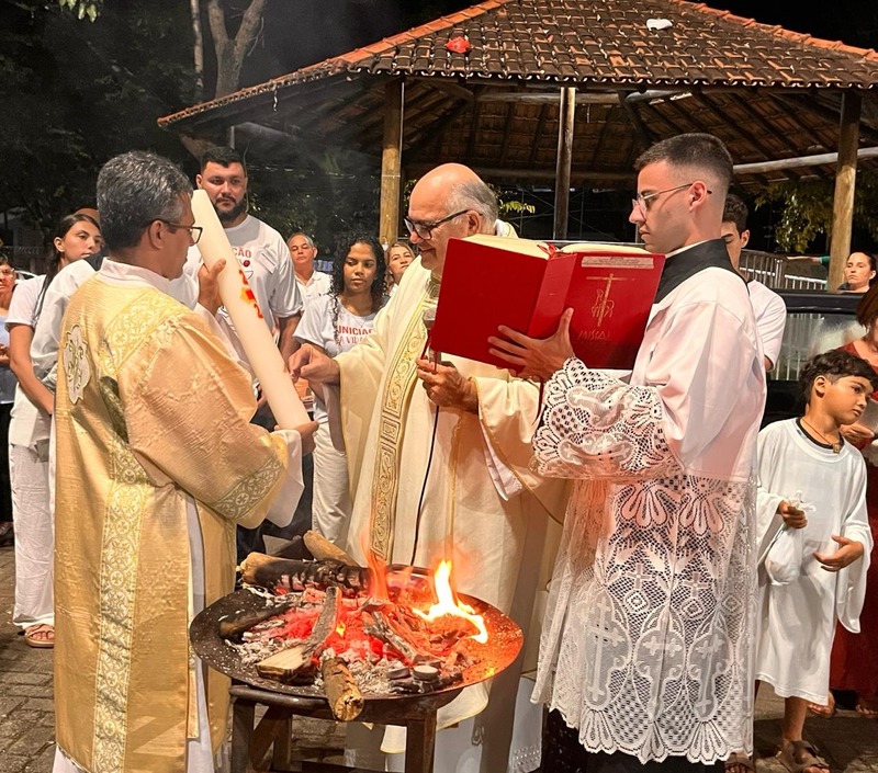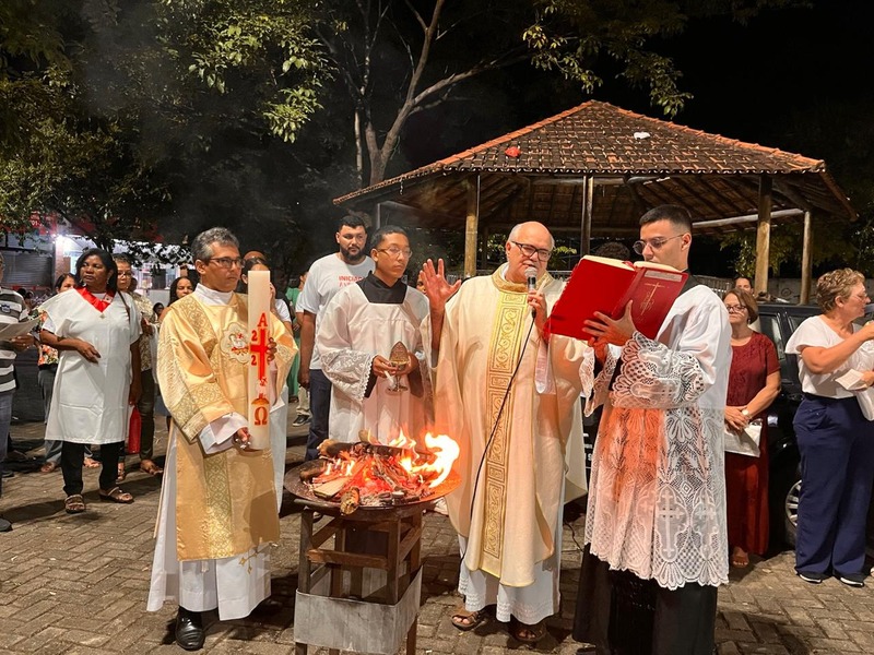 Na Vigília Pascal, são feitos três atos importantes, que começou com a celebração do fogo ainda na praça, na qual o Padre abençoa o fogo e acende o círio pascal. Já na igreja, aconteceu a Liturgia da Palavra ou Liturgia da Vigília Pascal, que contém nove leituras, sete do Antigo Testamento e duas do Novo Testamento, desde a criação até a ressurreição.