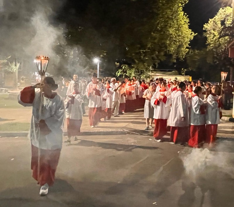 Na praça do bairro Bom Jardim e na praça do Esperança, preparou- se uma fogueira, onde todos se reuniram para iniciar as vigílias simultaneamente. Foram organizadas as fogueiras, e após a Benção do Fogo Novo, o padre acendeu o Círio Pascal e do Círio Pascal as pessoas foram acendendo suas velas para iniciar a “Procissão da Luz” até às Comunidades São Geraldo Magela (Bom Jardim) e Nossa Senhora das Graças (Esperança).