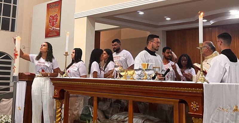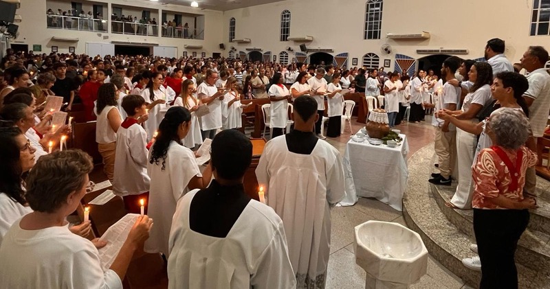 Outro momento muito importante durante a Vigília Pascal, é a recepção dos Sacramentos de Iniciação, que é um momento de muita alegria para a Igreja e também para as famílias, que através dos seus entes queridos, recebem a Graça de Deus, derramada através do Sacramento que entra em cada lar.